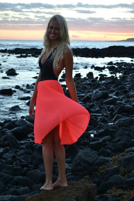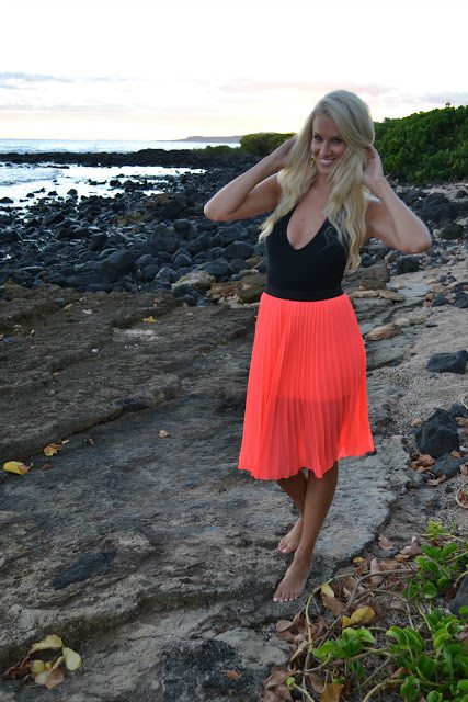 When I was at H&M the other day picking up a few fall items and came across this to die for makes my heart skip a beat bright amazing neon skirt, instantly I was in love. It would have been just mean to leave without it, it wasn’t even my right size.. but it had to be mine. I figured I could wear it into the fall with a fun graphic tee, leather jacket and some studded boots. Great find, go scoop up this gem!!