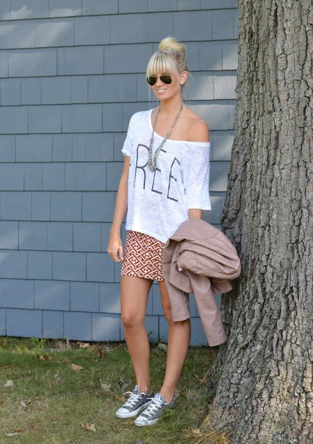 Top- Forever 21/ Skirt- Forever 21/ Jacket- Arden B Similar / Shoes- Converse buy here / Necklace- Forever 21