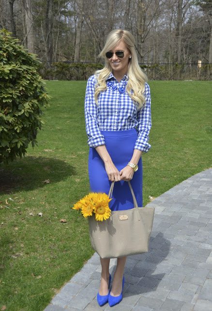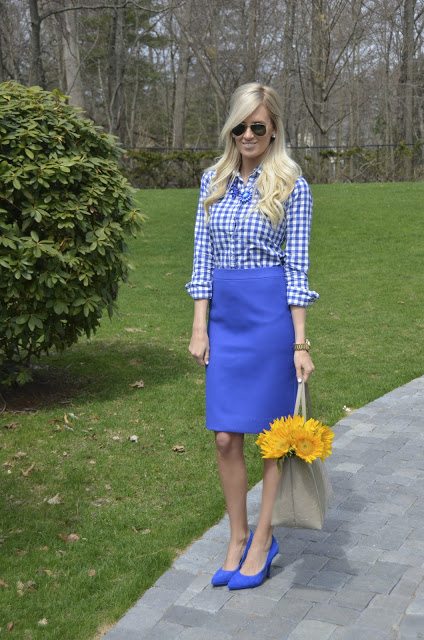 Ok, stop it! You are an absolute BEAUTY! This blue cornflower look is so gorgeous! I love the shape & color of your pencil skirt pretty lady!