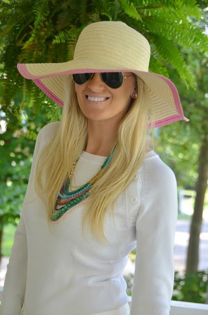 Top- H&M/ Shorts- Forever 21/ Belt- Zara /Heels- Jessica Simpson/ Hat- Marley Lilly /Earrings- Kate Spade/ Necklace- Stella and Dot/ Clutch- Target / Bracelet- Kate Spade/ Watch- Michael Kors