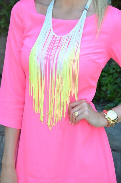 this is FAB! such a beautiful color pink and I love the fringe necklace!!