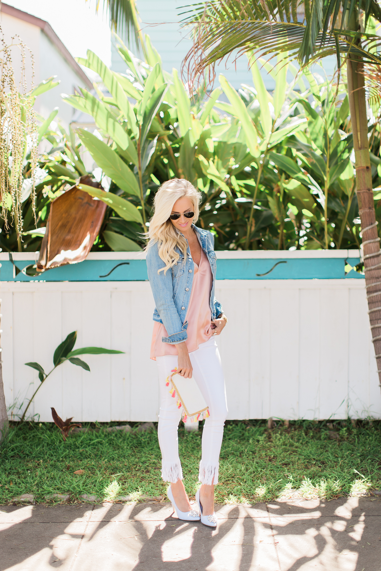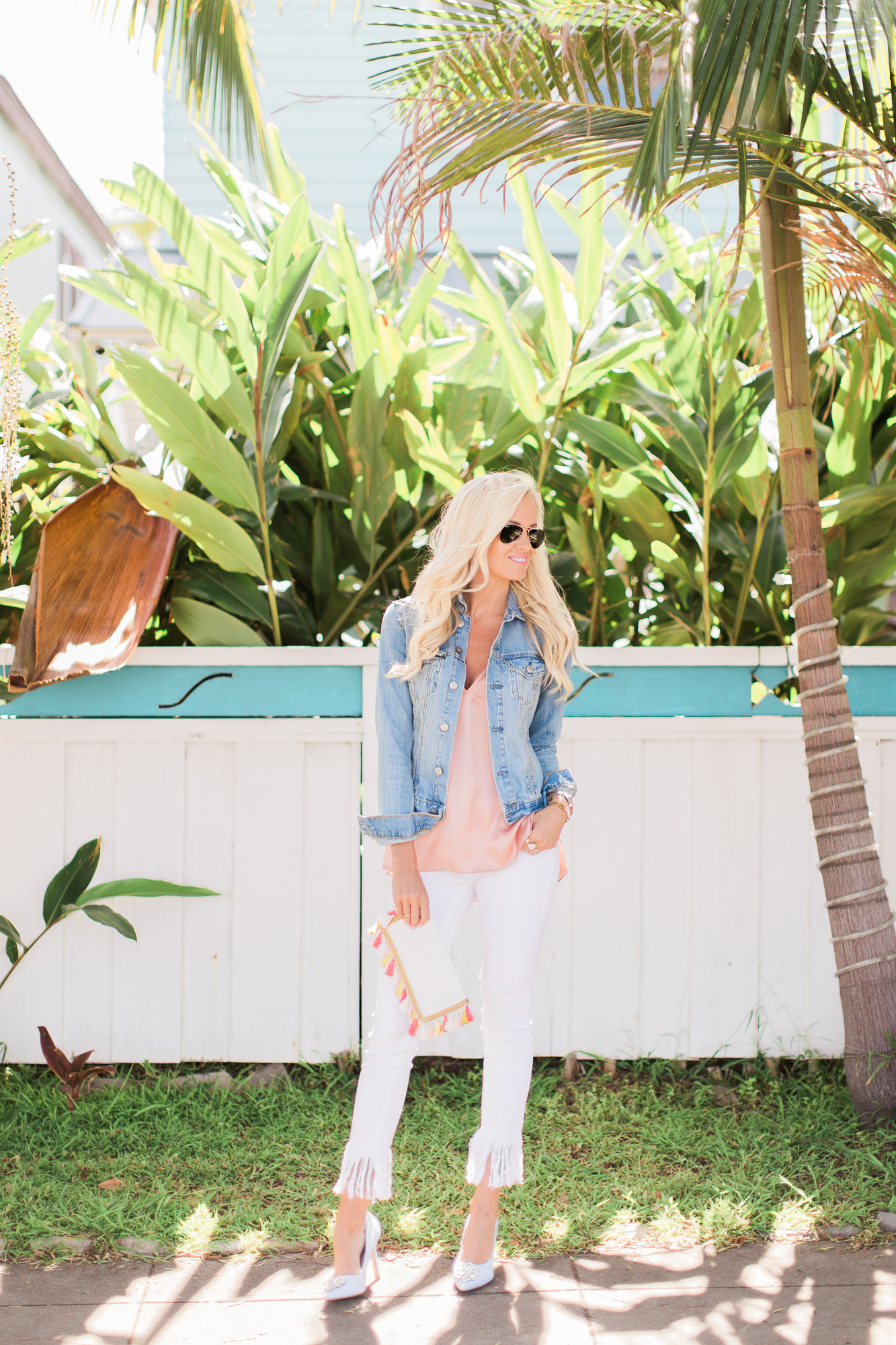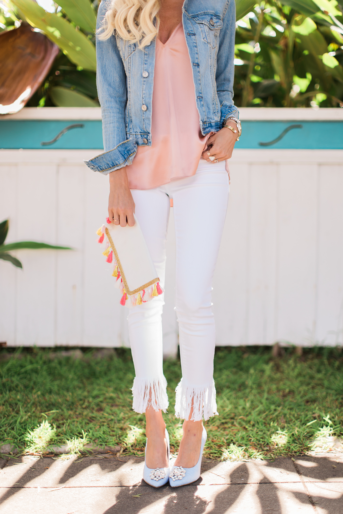 This outfit is too gorgeous! One of my friends recently wore light wash fringe jeans like that and they were so cute – I’ve been on the hunt ever since!