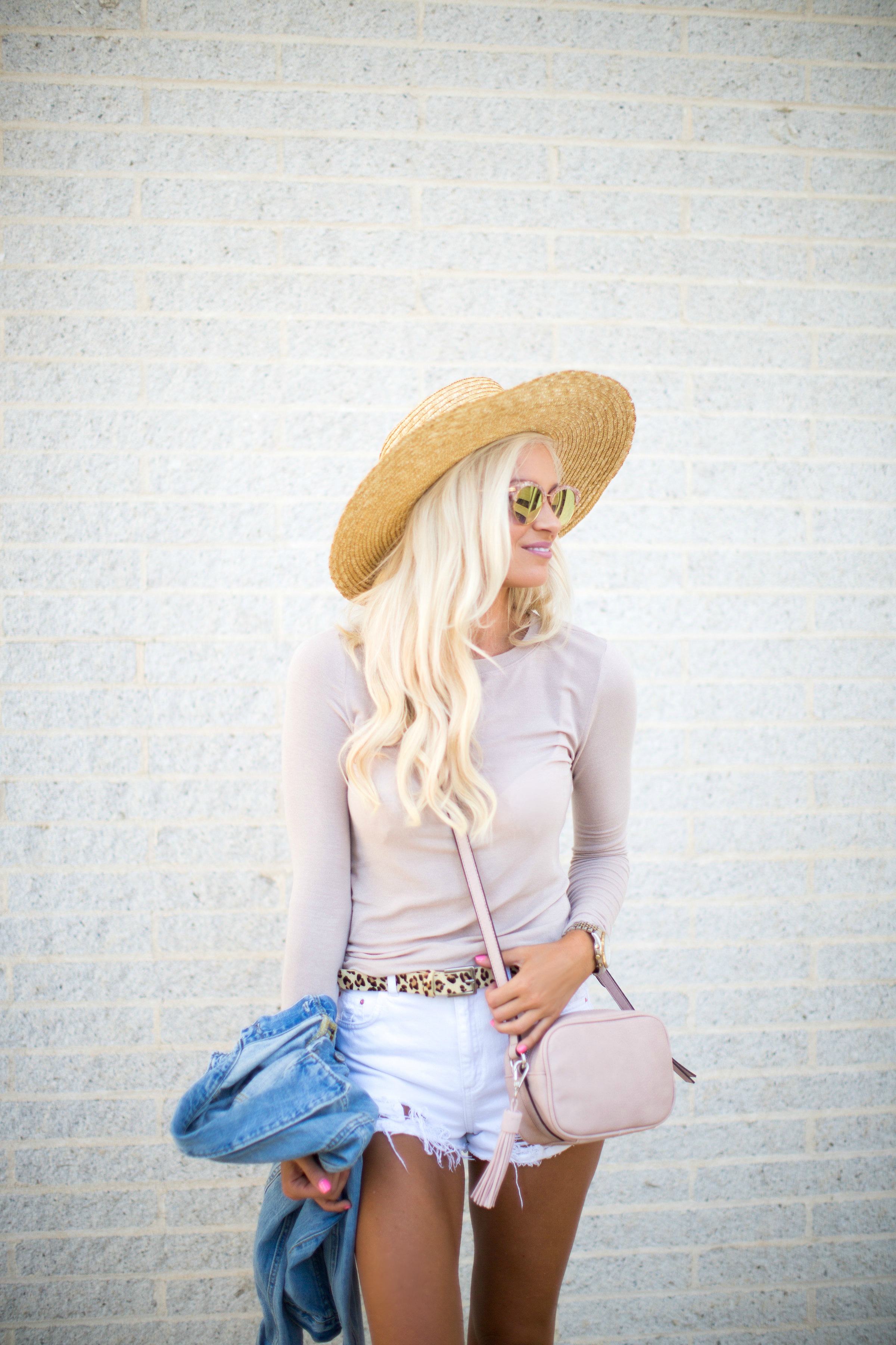 Jacket: H&M | Top: Trouve | Shorts: Topshop | Heels: Marc Fisher LTD | Bag: Phase 3 | Belt: Urban Outfitters | Sunglasses: Sonix