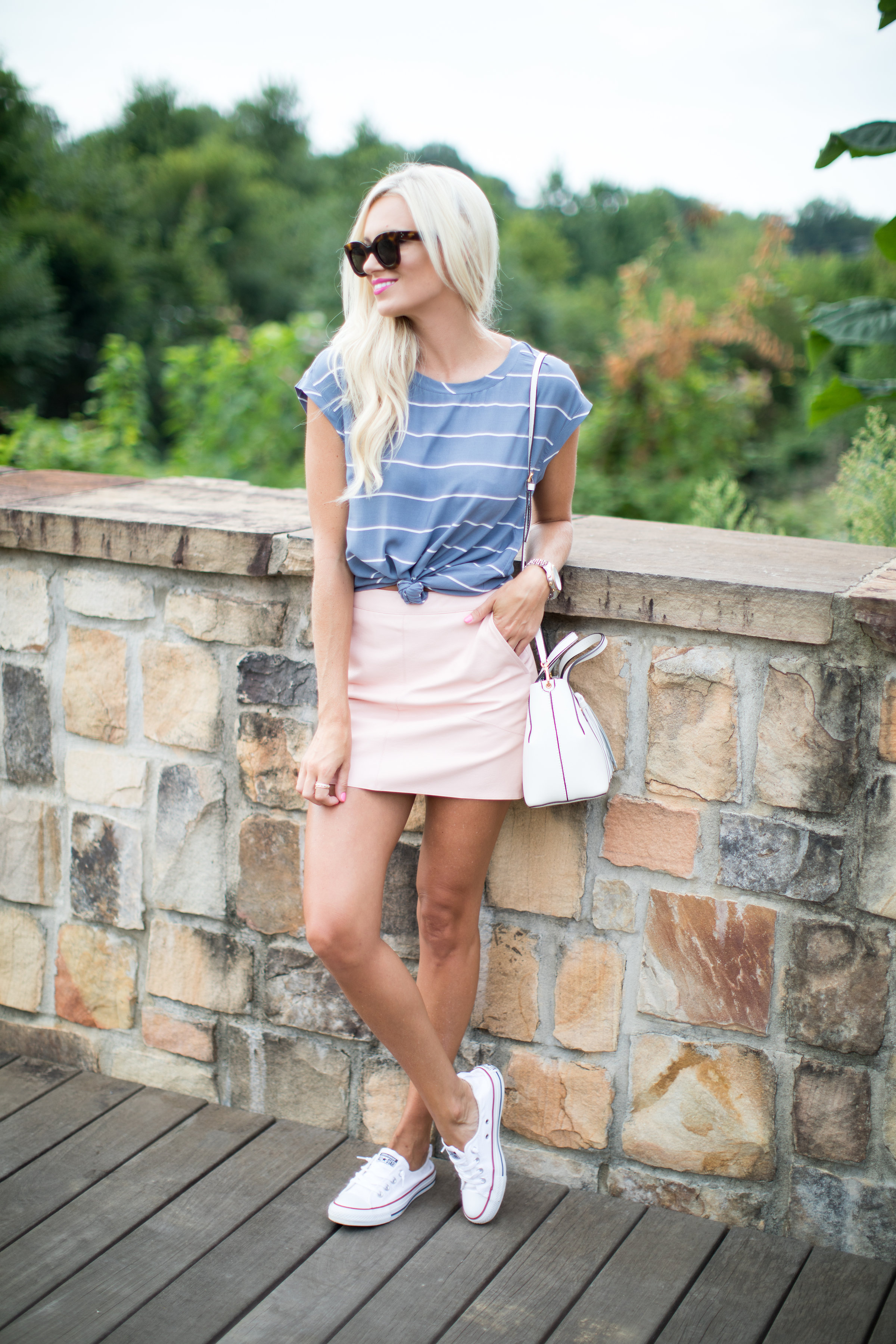 Tee: Abercrombie | Skirt: Lulus c/o| Shoes: Converse | Bag: Furla c/o| Sunglasses: Celine