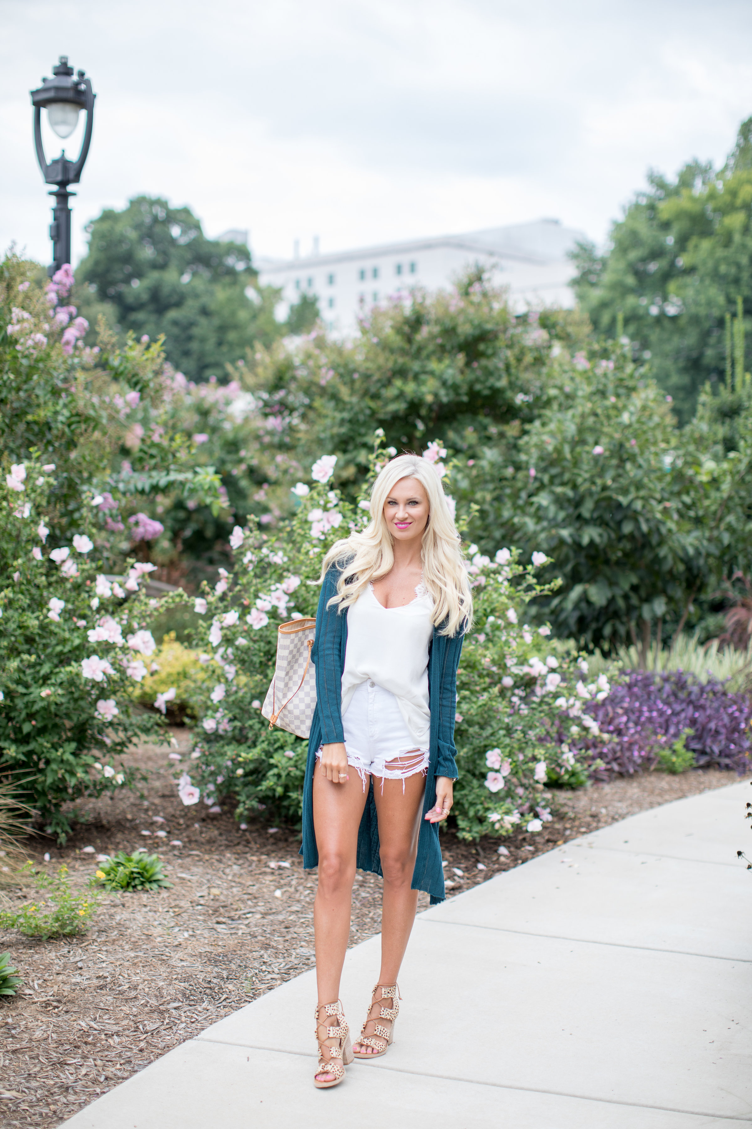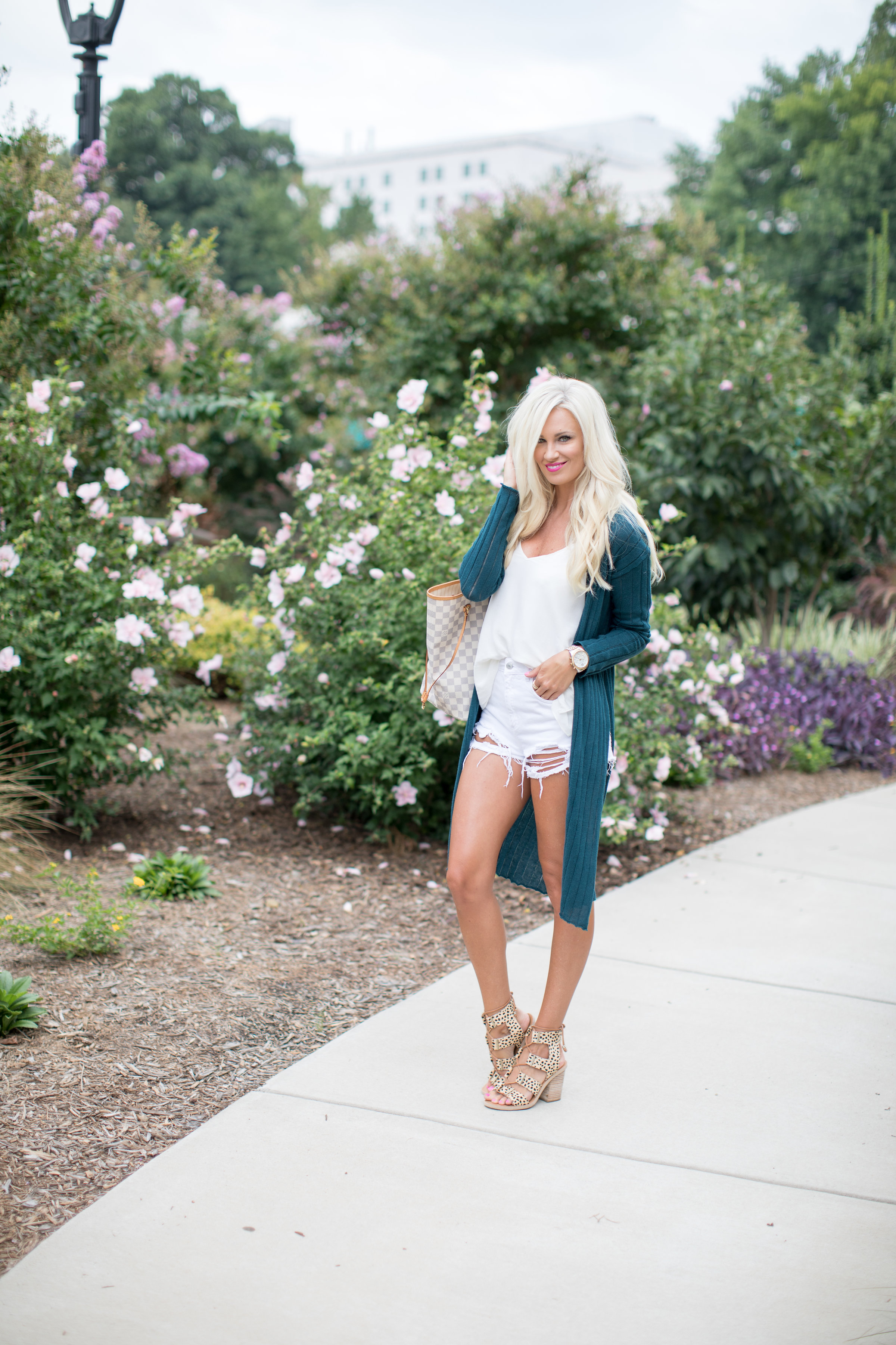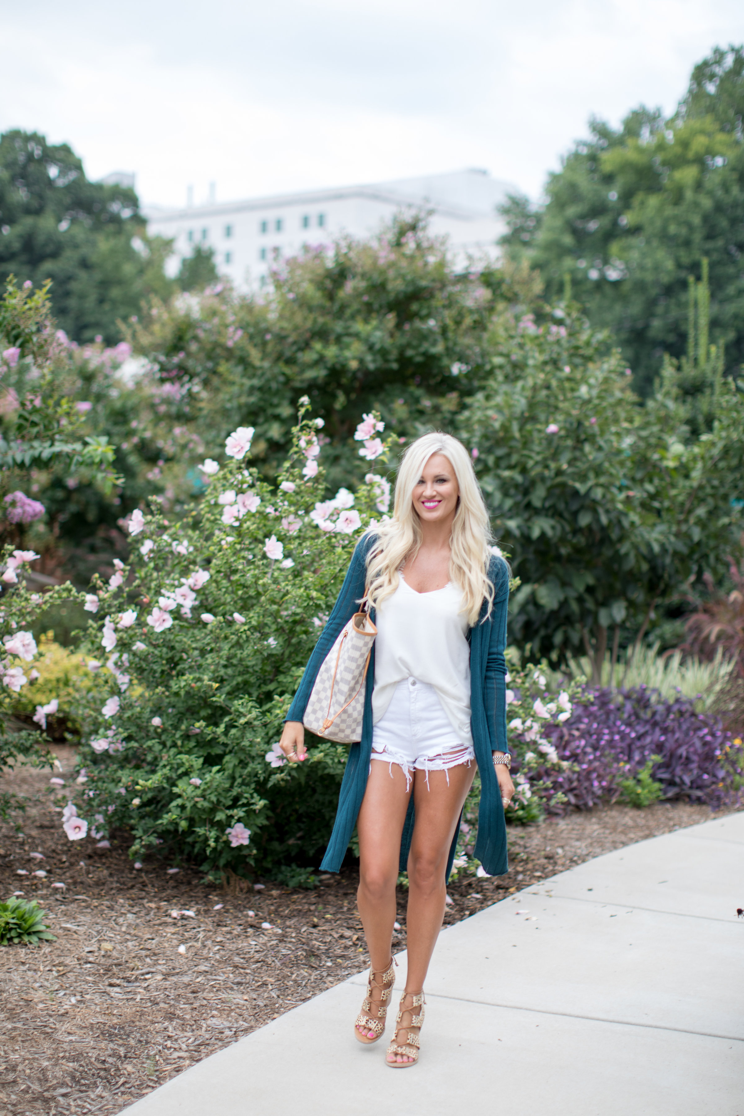 Cardigan: Free People | Tank: Topshop | Shorts: Topshop | Sandals: Dolce Vita | Bag: Louis Vuitton