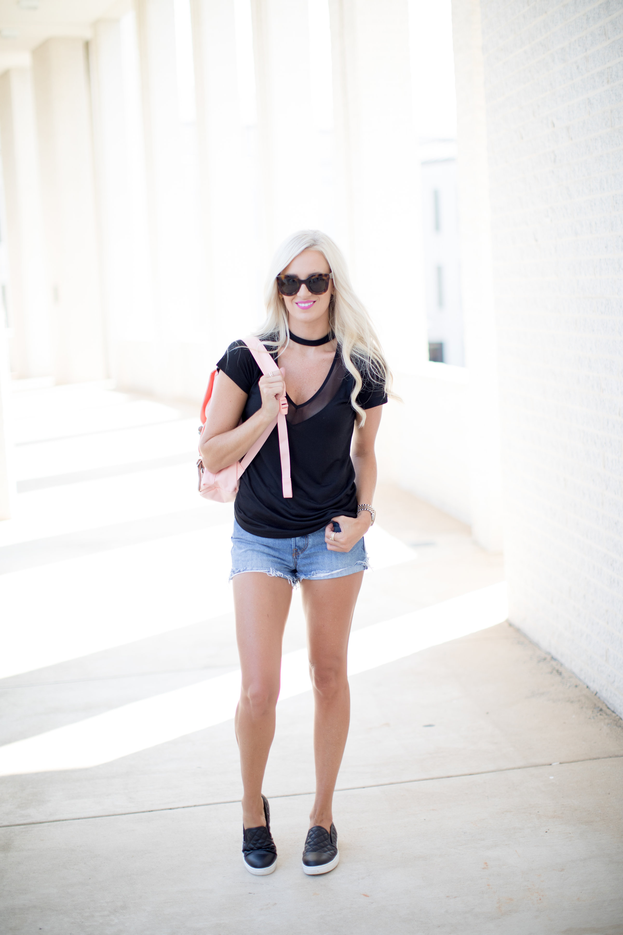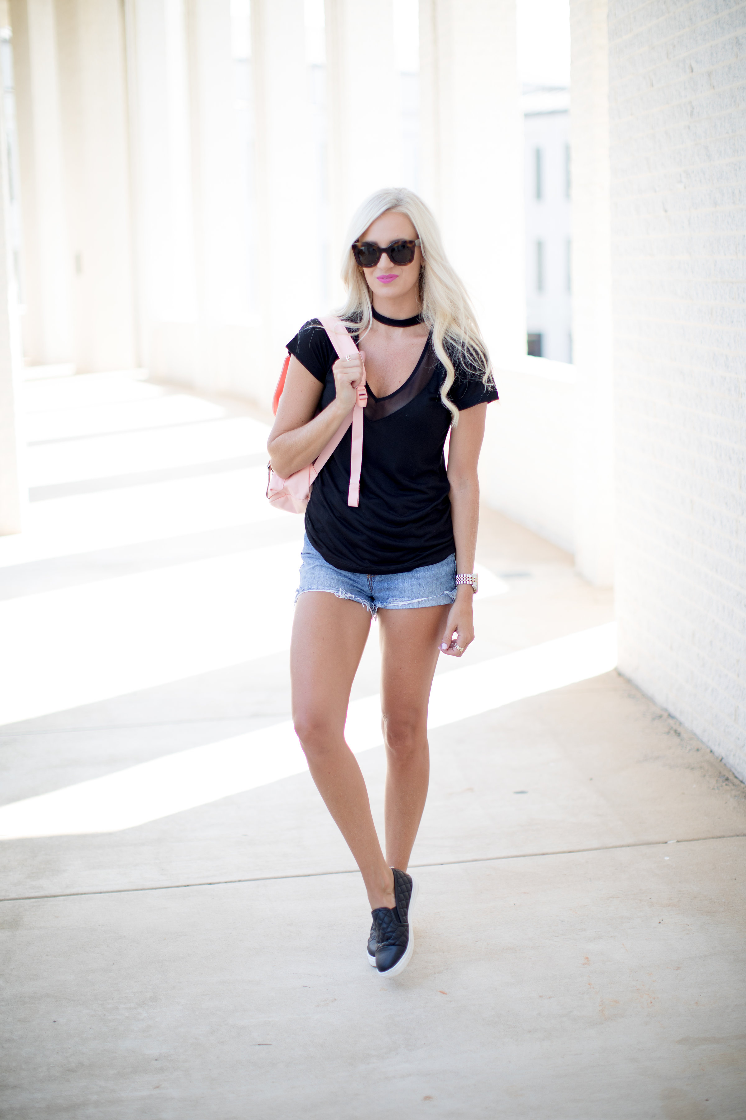 A classic black tee with jean shorts is by far my favorite wear for a summer to fall transition! And that backpack is everything. <3