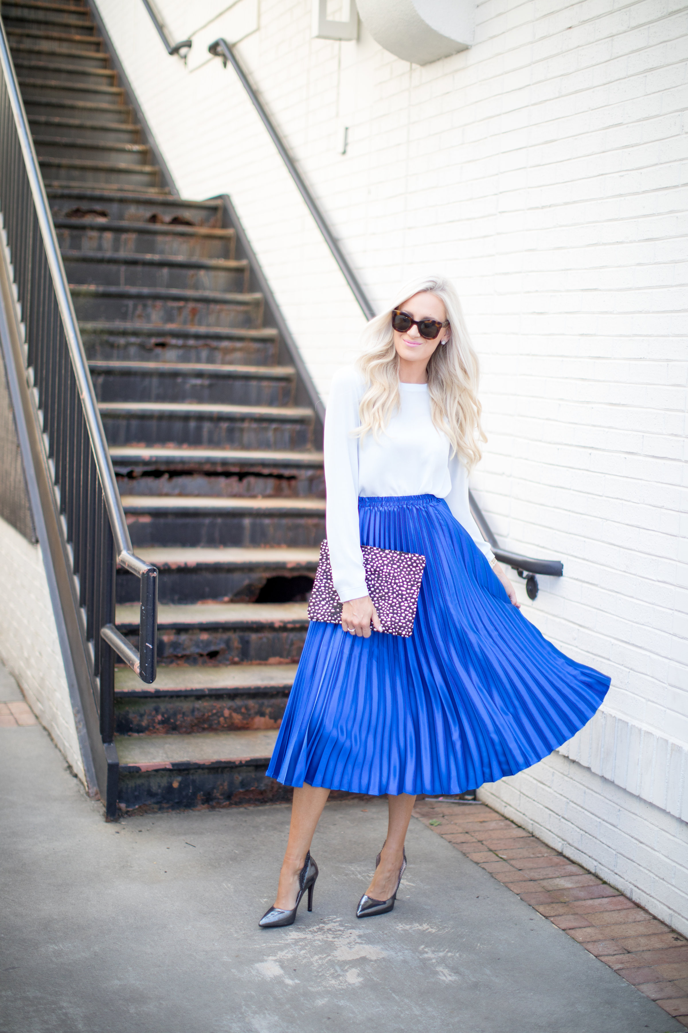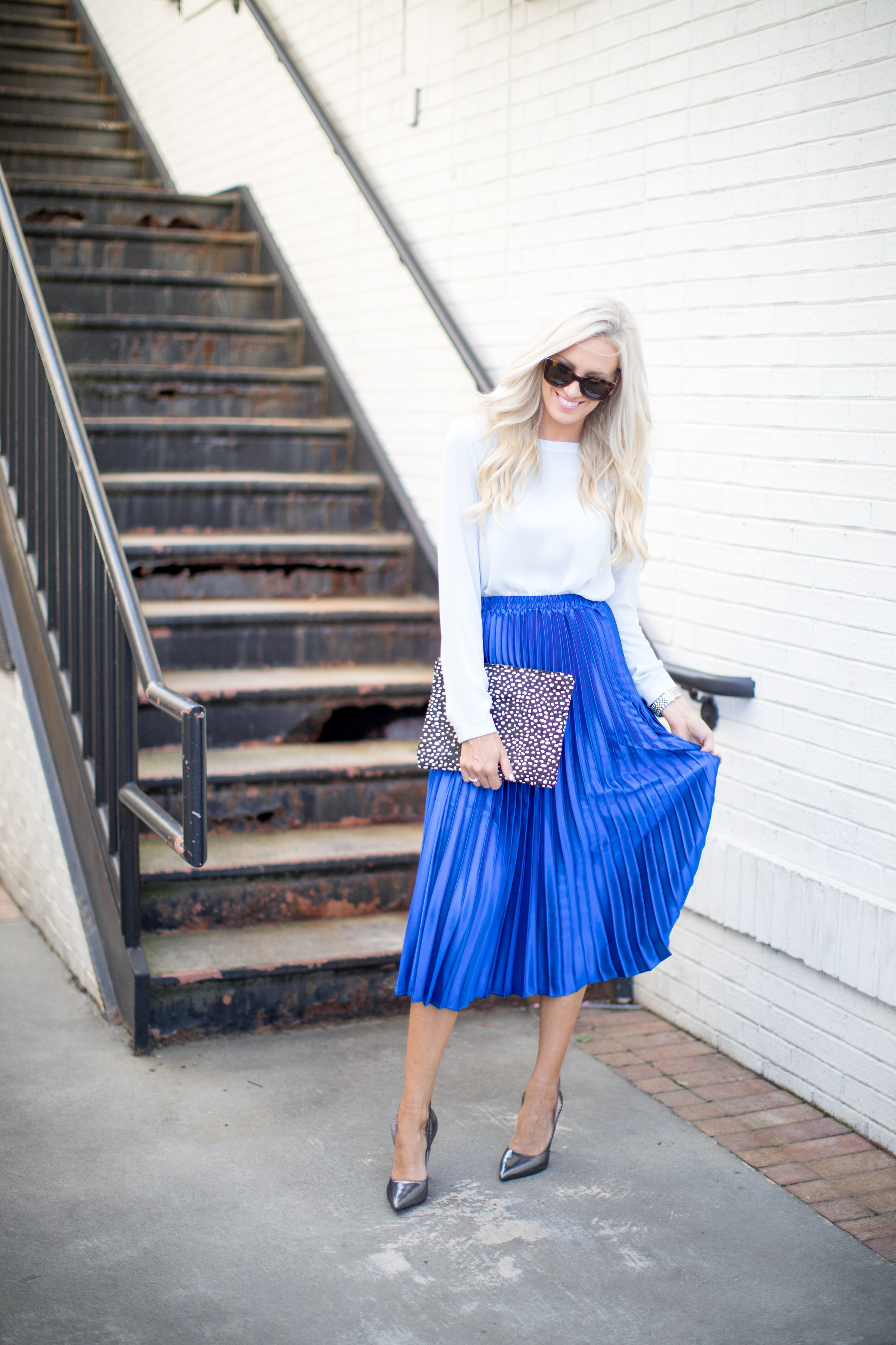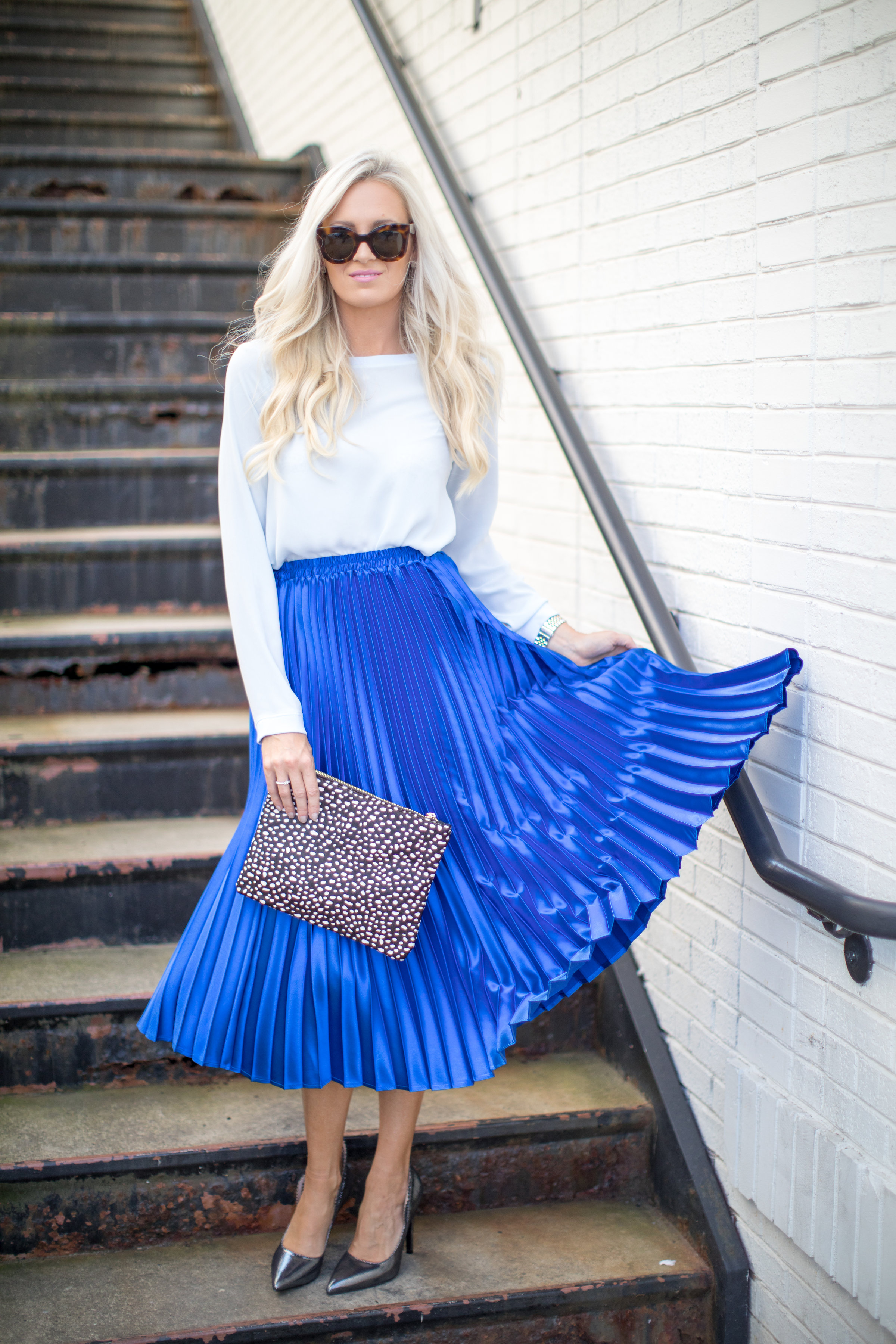 Ok, how fun is this skirt?? I love the bright blue color and how you styled it!