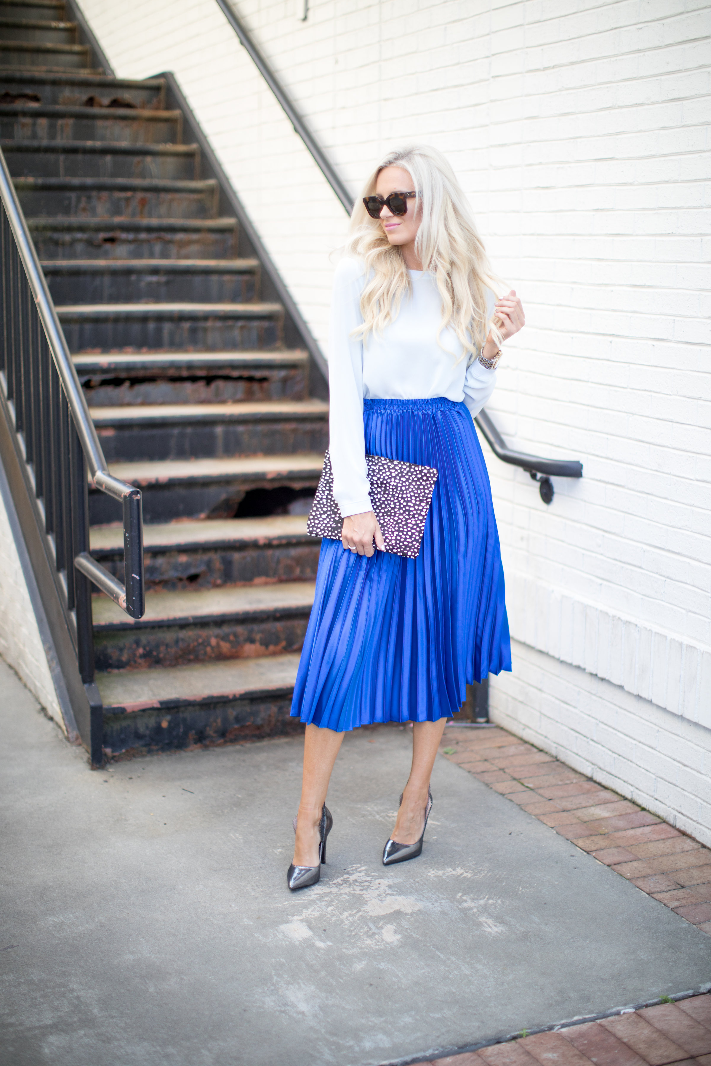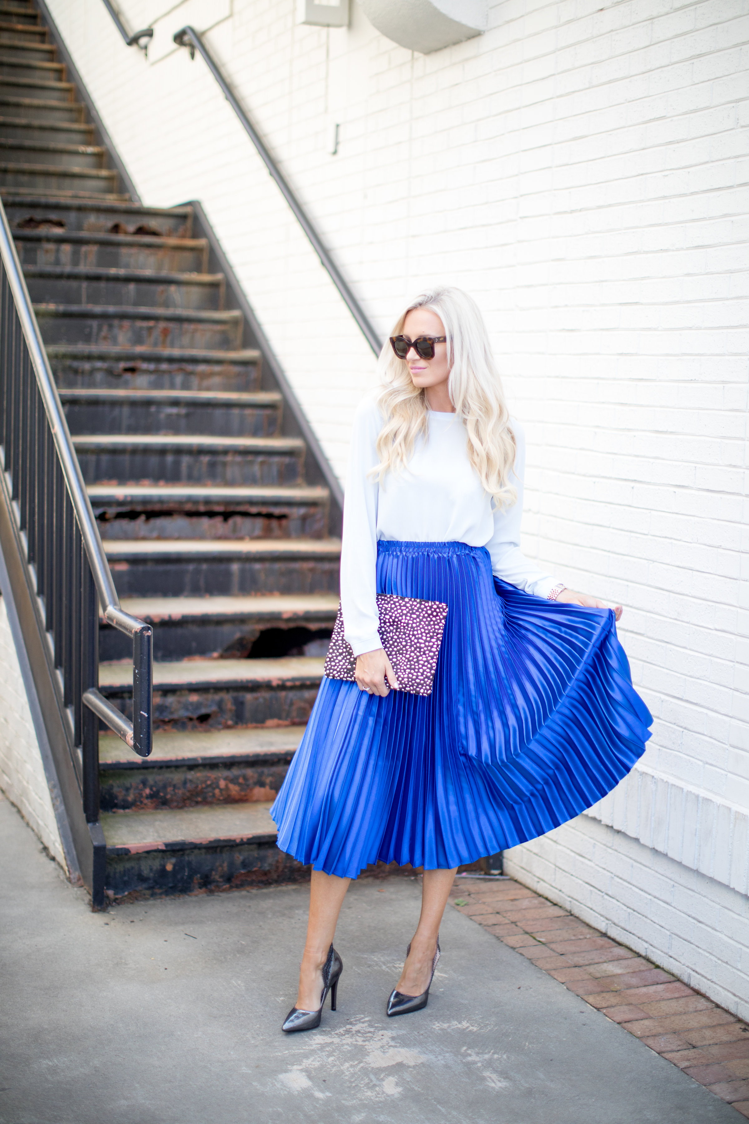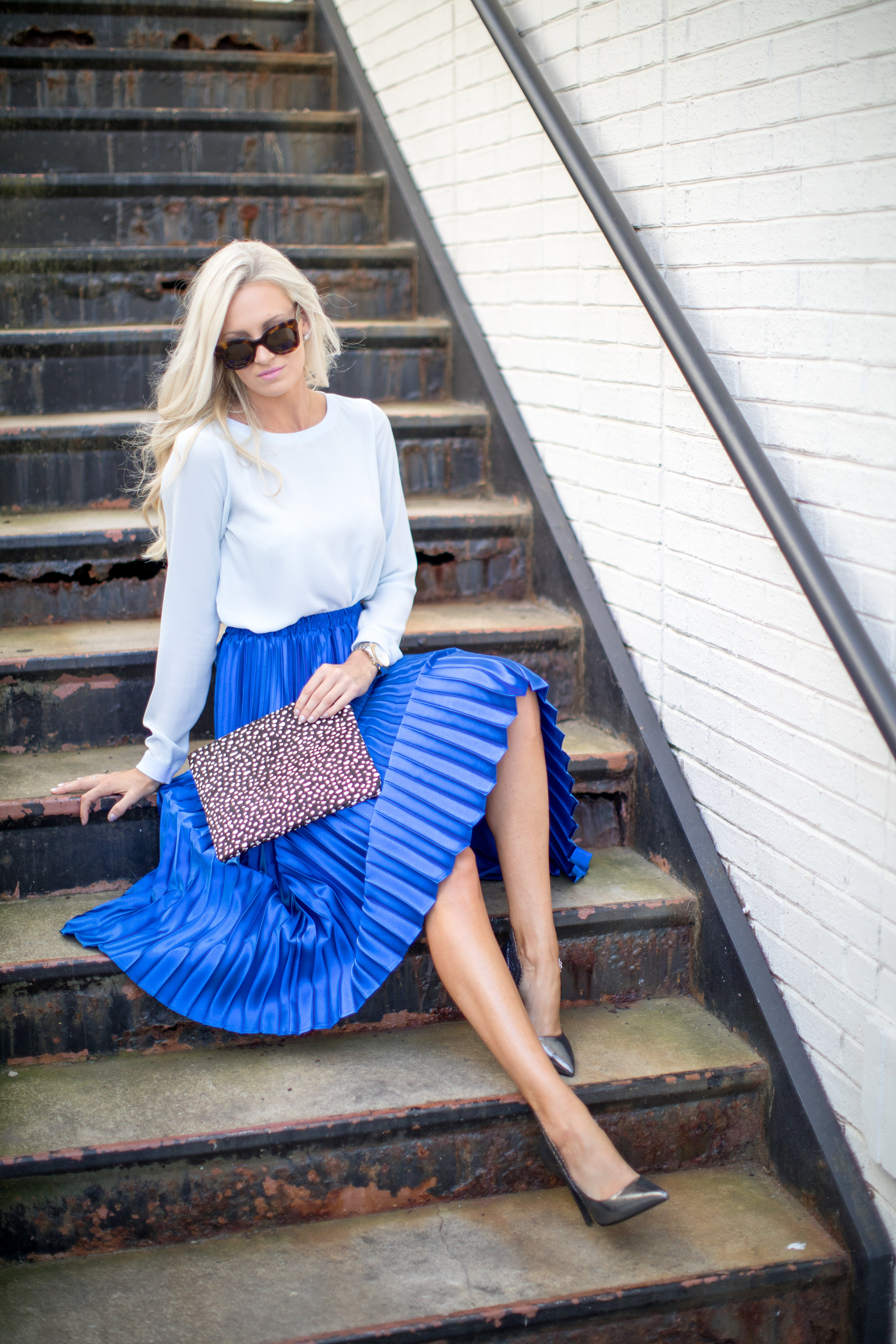 Ok, how fun is this skirt?? I love the bright blue color and how you styled it!
