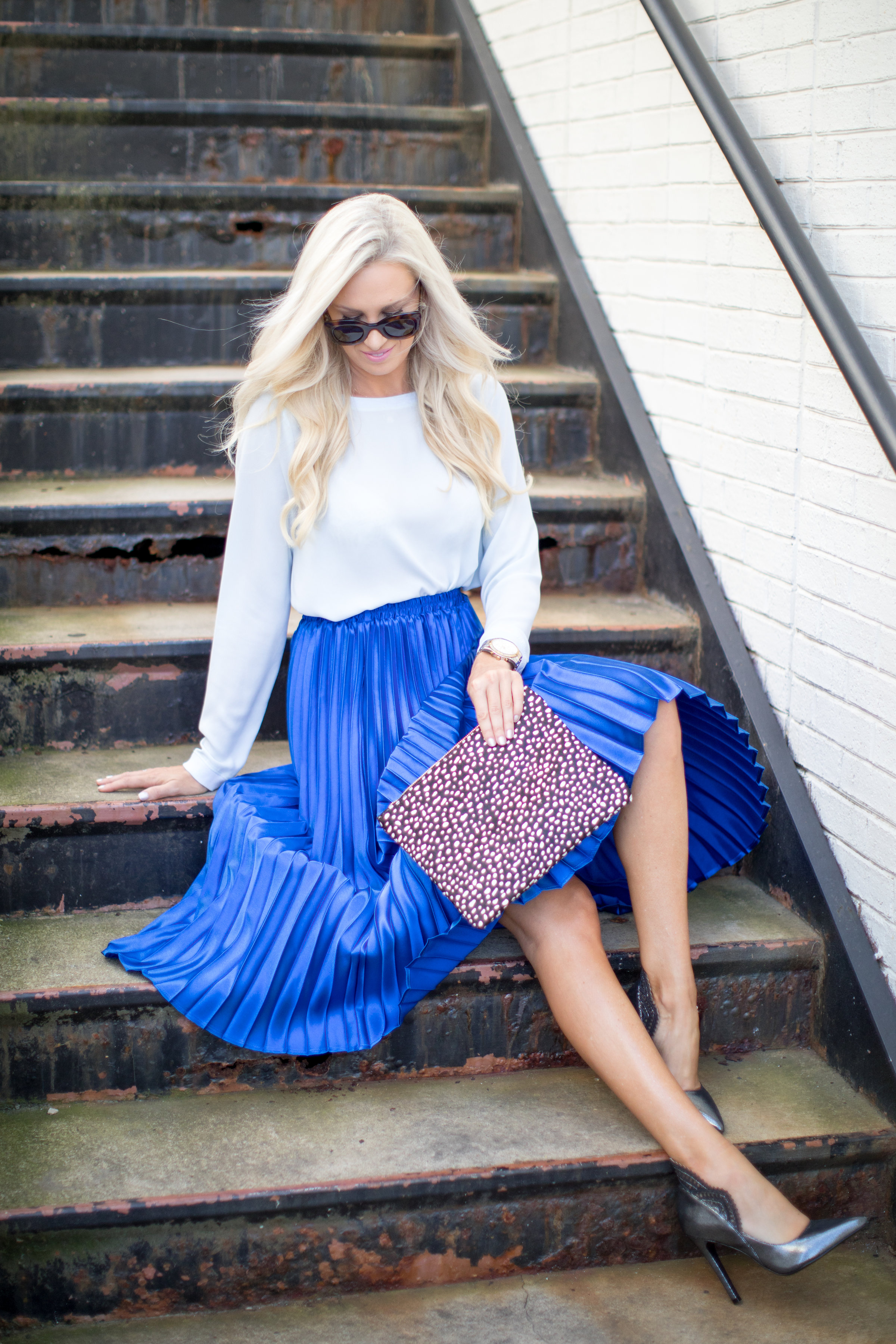 This outfit looks so great on you! I love those pleated skirts sooo much.