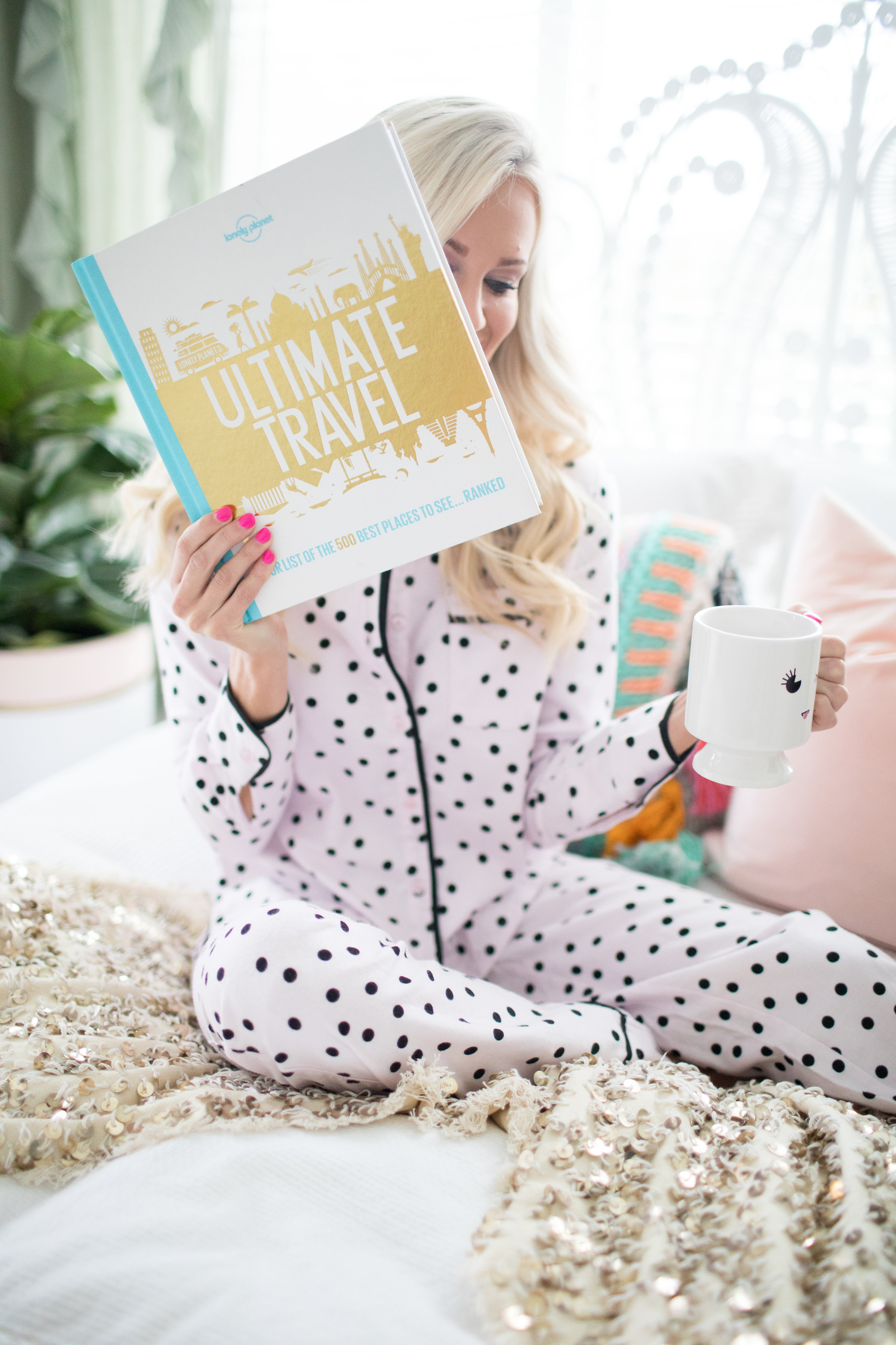 Headboard | Duvet Cover | Colorful Pillow | Blush Pillow | Polka Dot Pj’s | Best Bed Sheets Ever | Similar Mug