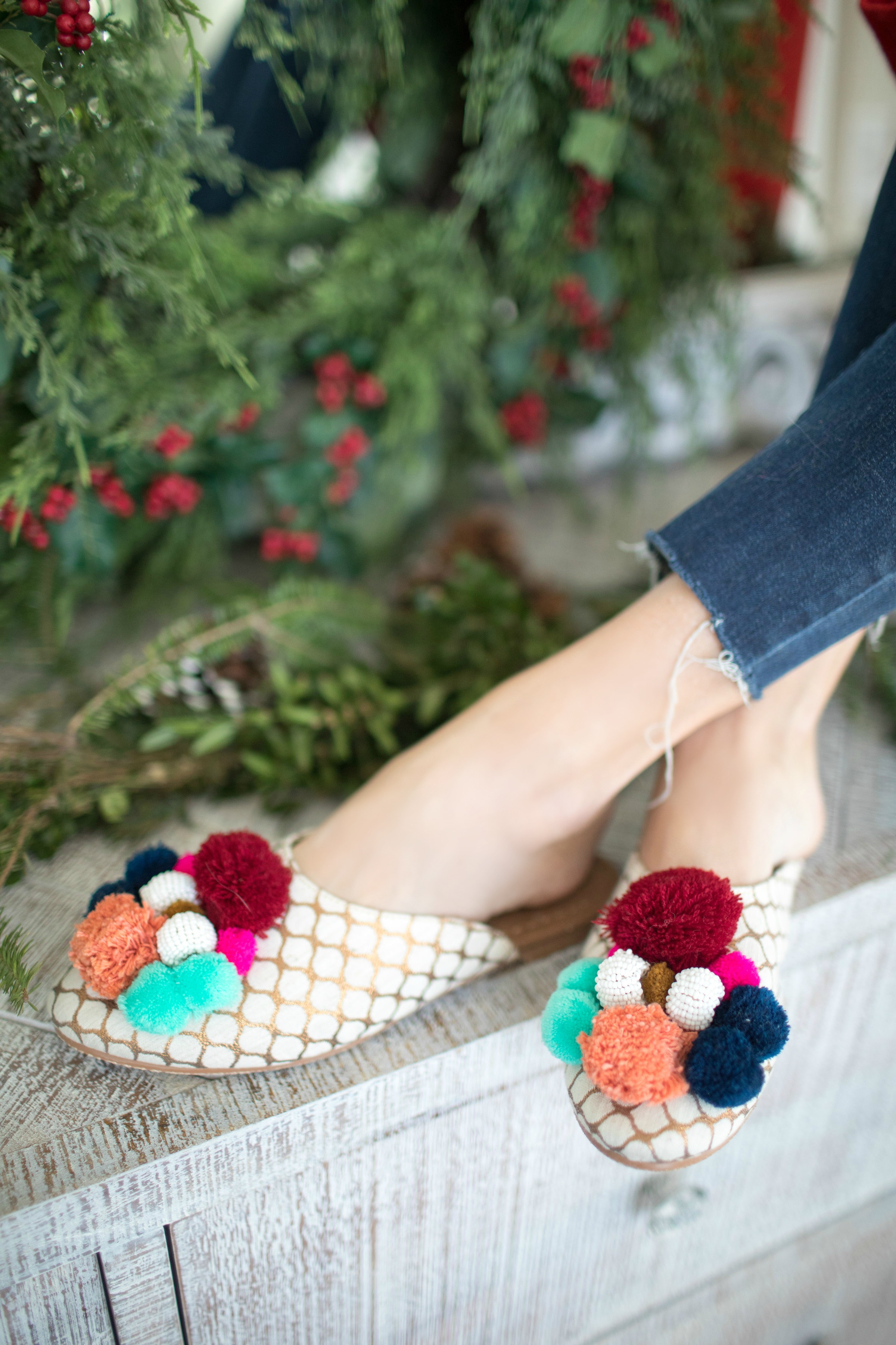 What a gorgeous dresser! Also, I love your pom pom shoes.