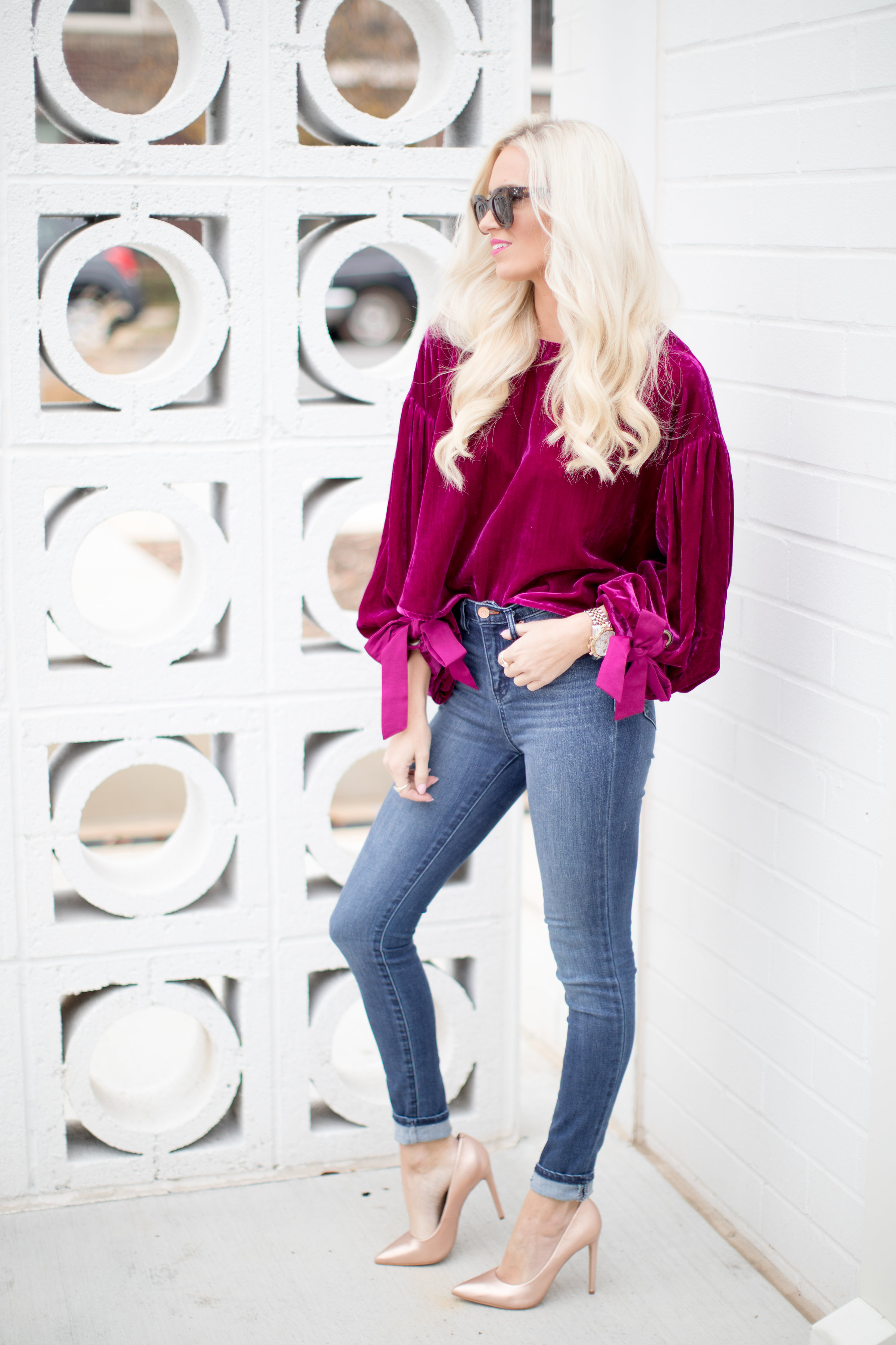 This pink velvet top is SO fun, perfect for a little girls night out or even a holiday party!