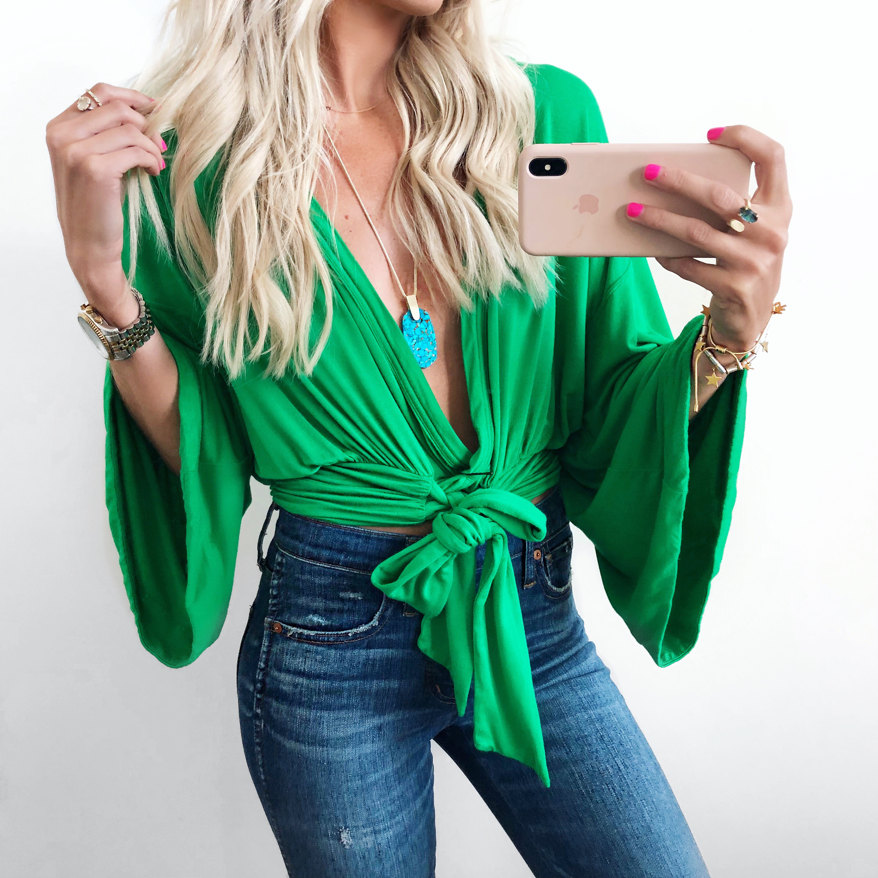 The easiest to manage tops when the weather ranges all day. These tops are also perfect for to transition from work to drinks and dinner later on in the evening! I love this bright green tank top, such a bold color and you’ll stand out for all the right reasons. The material is breathable and stretchy, allowing you to not get too hot if it is a bit warmer than yo expected outside. As for the blush tone tank top, a cold shoulder top is the way to go throughout the springtime in general. This is a simple, dainty option to have in your wardrobe! If it gets a little chilly, throw a suede jacket on top and you have a perfect pair.