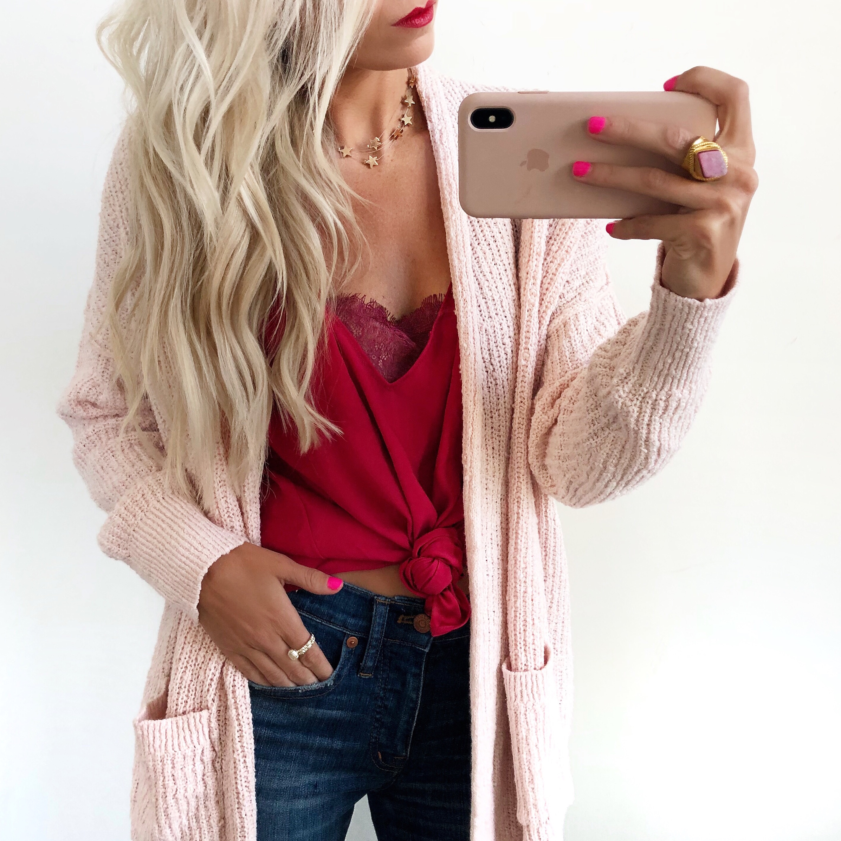 It is that beautiful time of year where winter is finally starting to closer her cold winter doors and spring is starting to shine through. If you live in a place like I do in Charlotte, North Carolina, the weather changes seasons daily in one week! It can be hard to plan for your outfits in the morning when it’s chilly in the morning, beautifully warm by the afternoon, but early evening starts to cool back down. When it comes to getting ready during these months, I have a few staple pieces that I keep on deck to ensure comfort, but also style throughout the entire day.