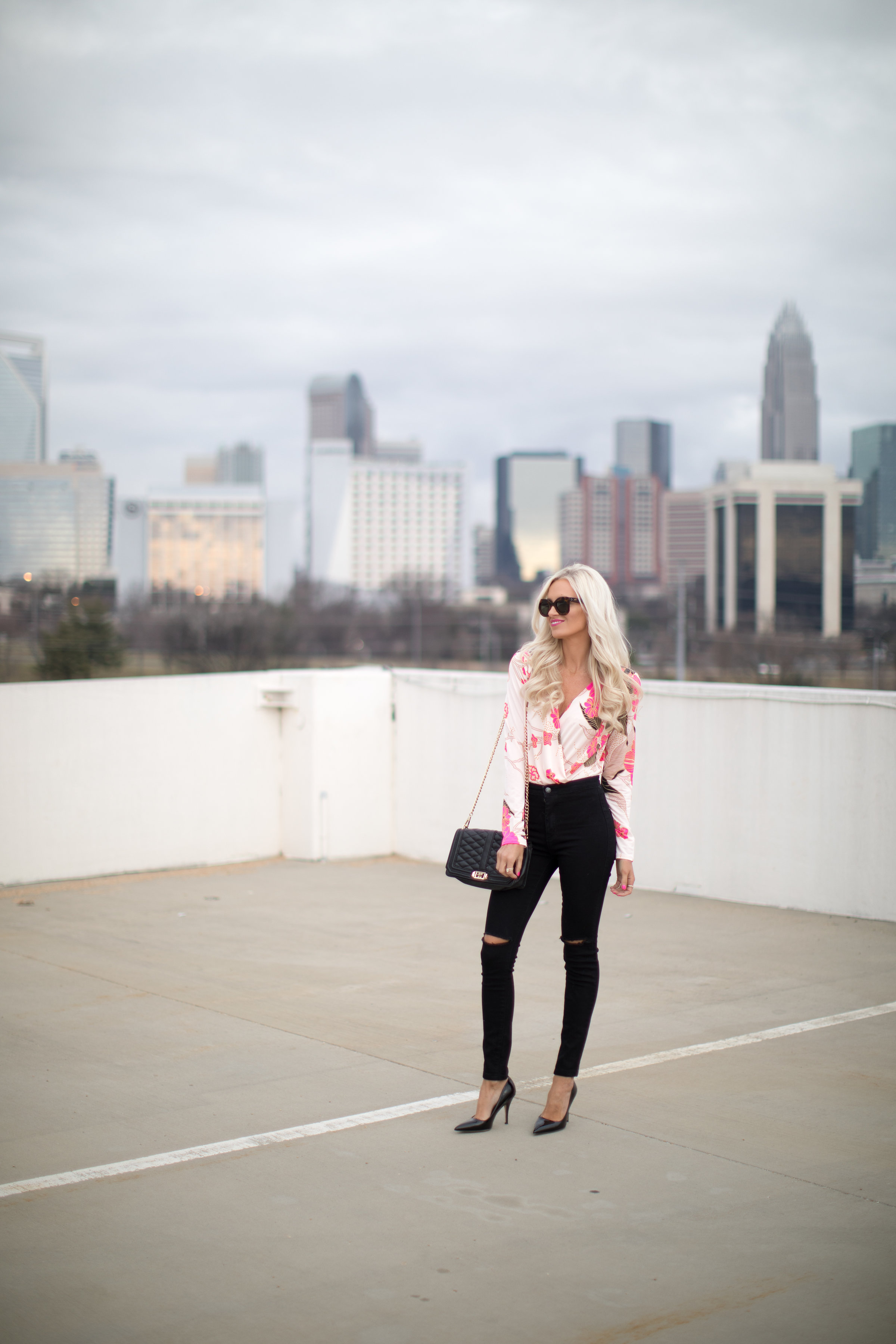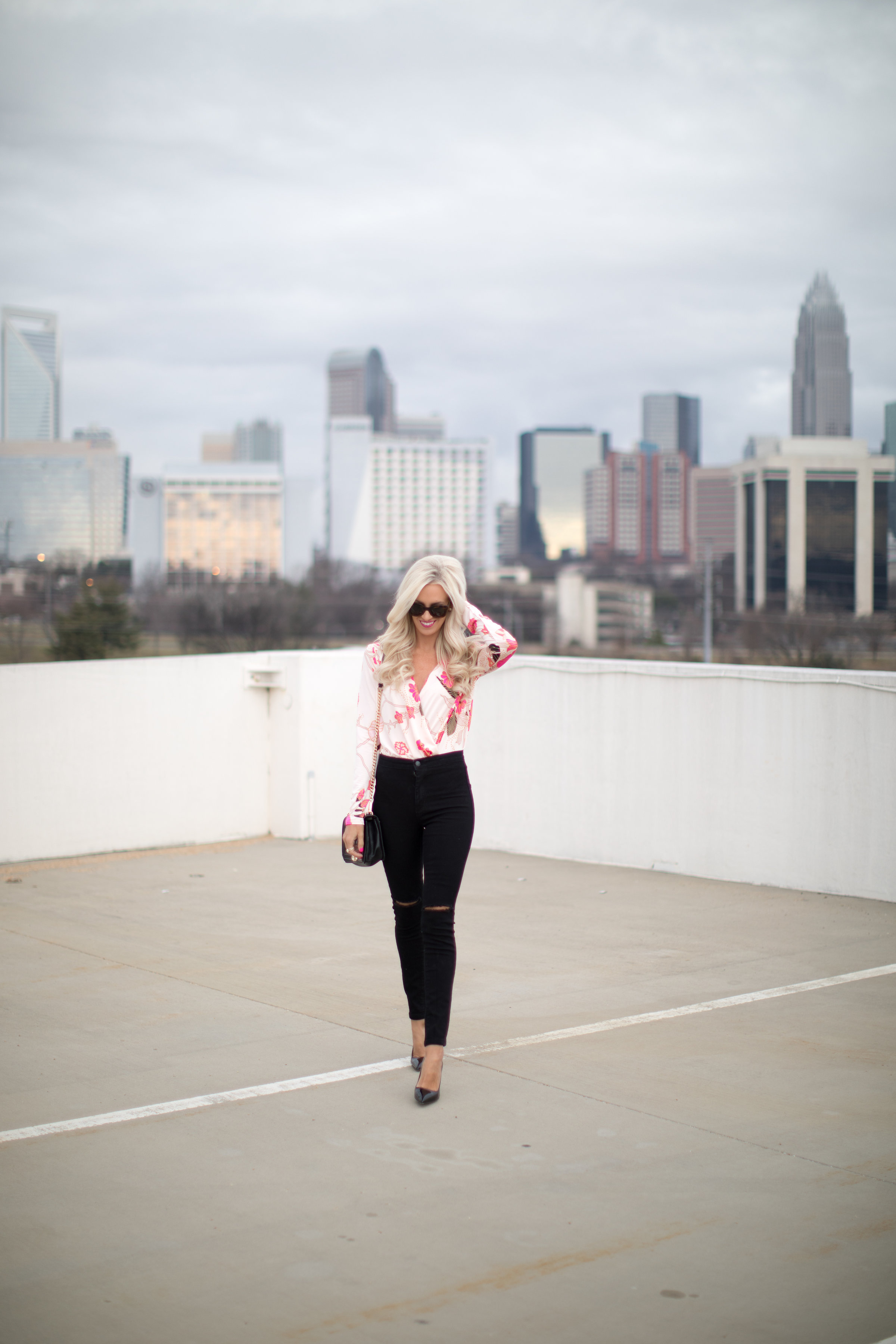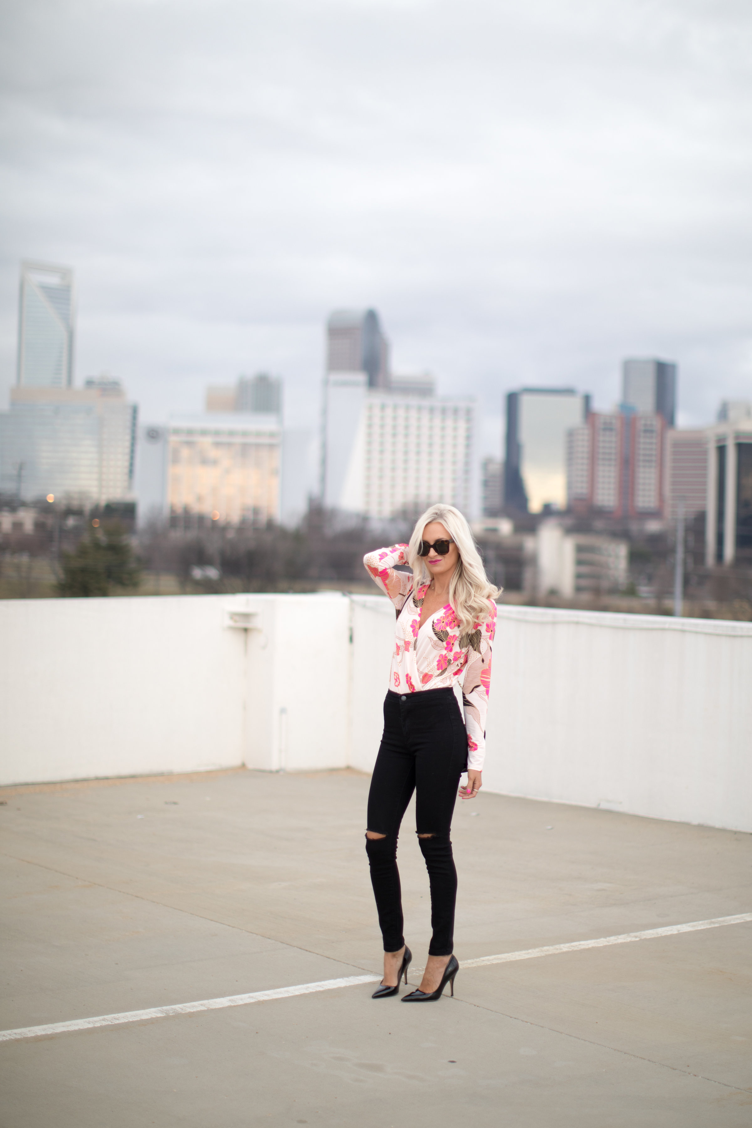 I’m sure I’m not alone but I’m already dreaming of those Spring days, this draped floral bodysuit is the perfect transitional piece into Spring and my new go-to for a girls night out. Add a great pair of high waisted jeans and some killer pumps and you’re ready to go!