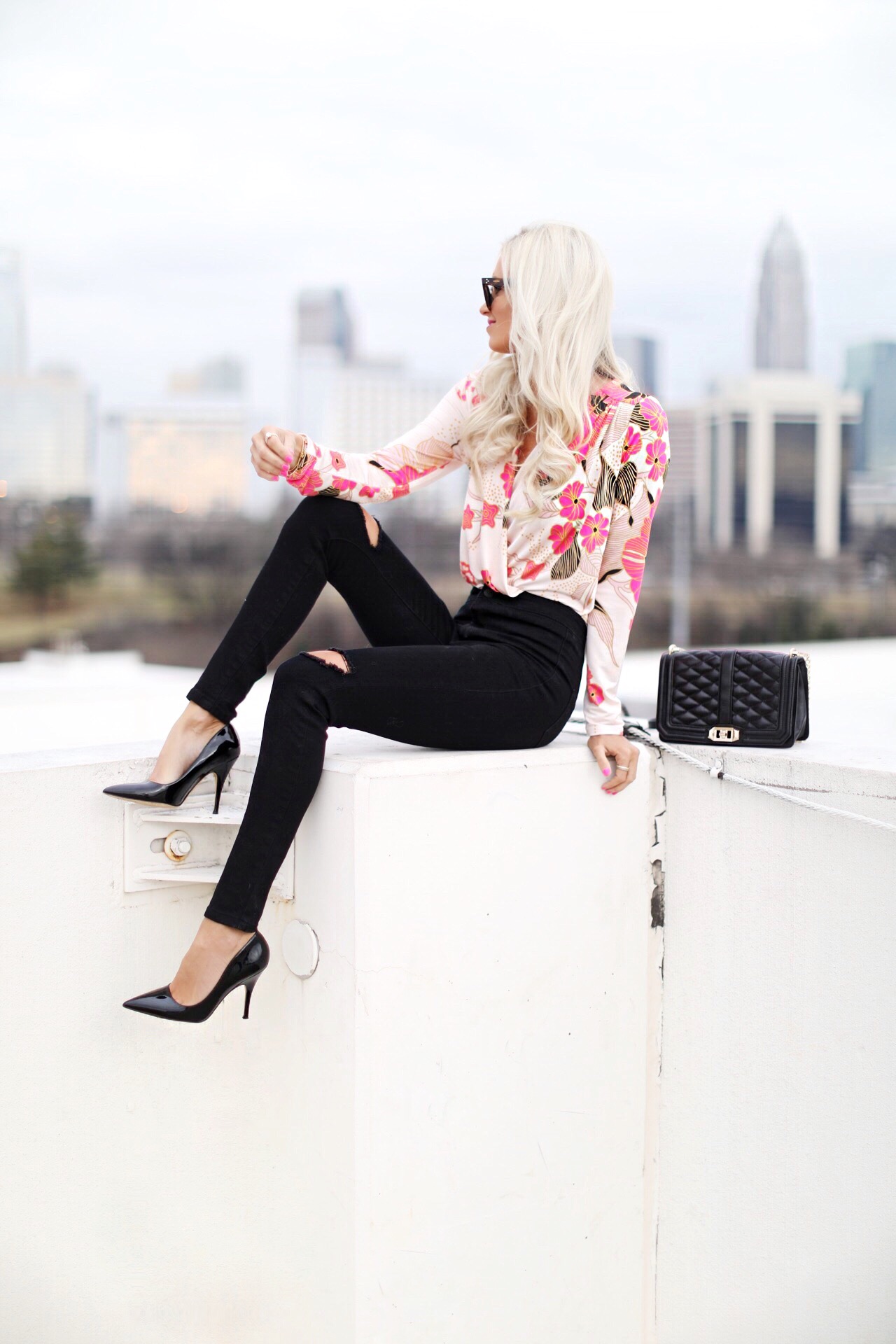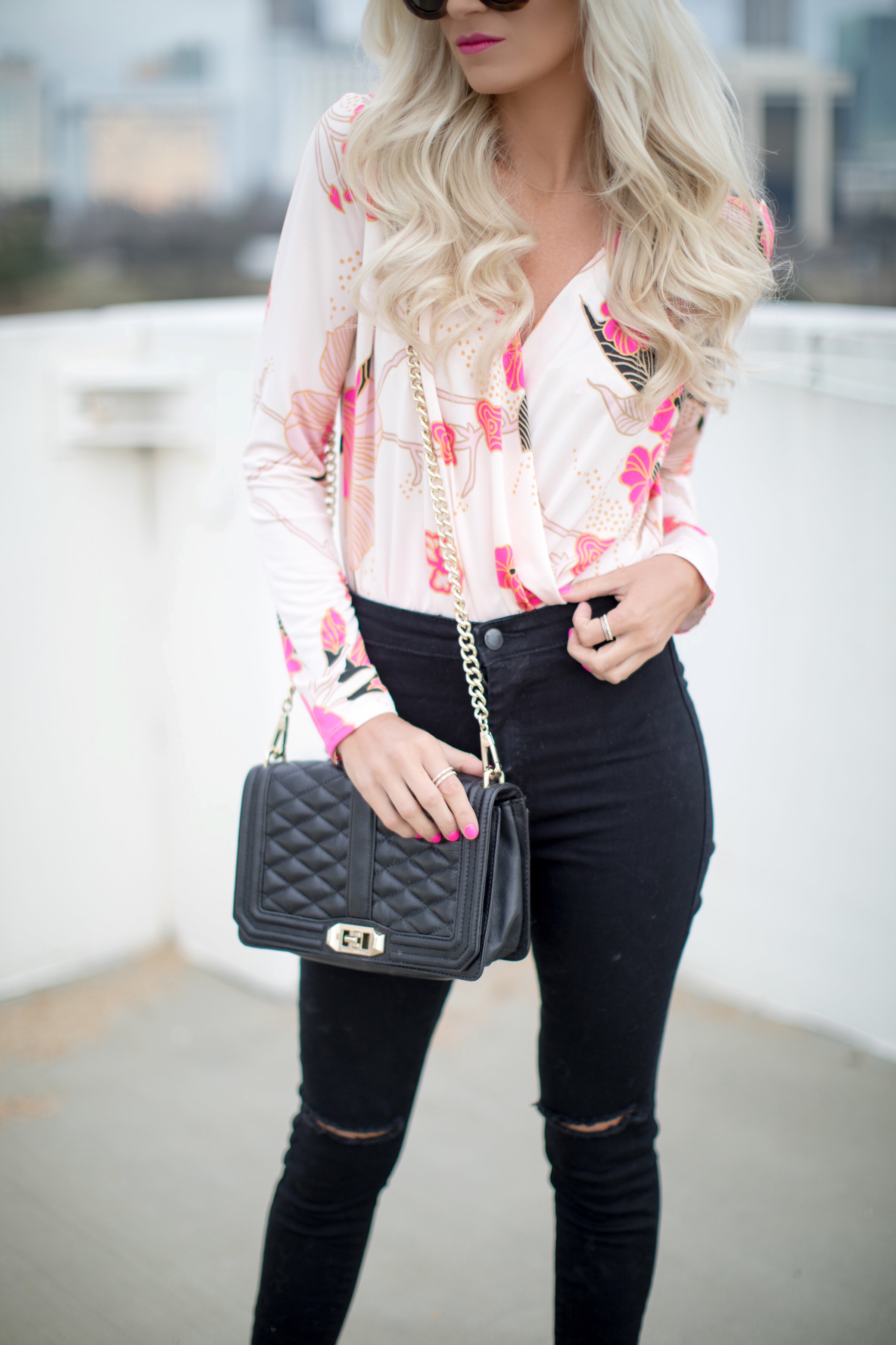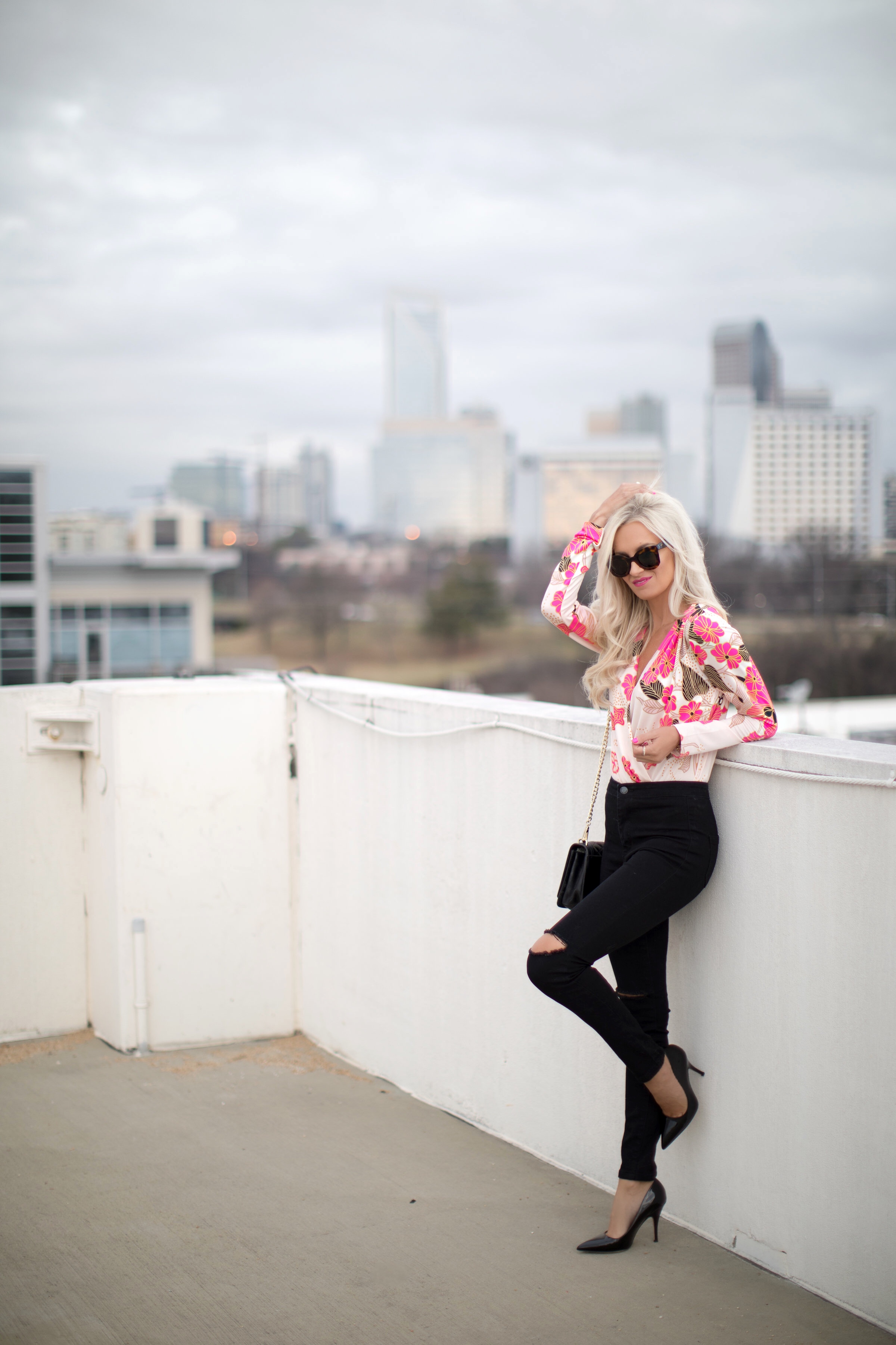 I’m sure I’m not alone but I’m already dreaming of those Spring days, this draped floral bodysuit is the perfect transitional piece into Spring and my new go-to for a girls night out. Add a great pair of high waisted jeans and some killer pumps and you’re ready to go!