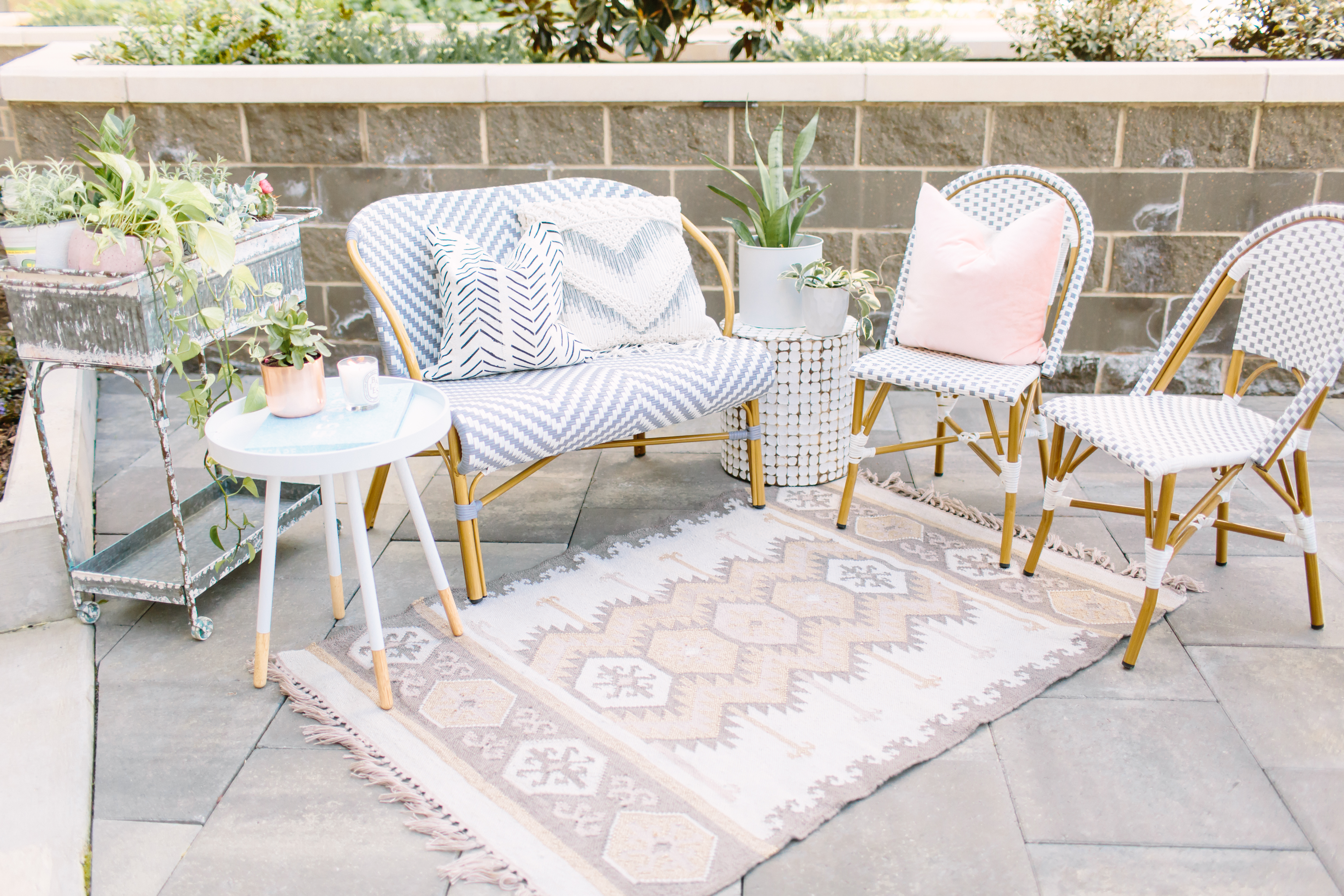 I love those bistro chairs. Had no idea they made a matching bench! Looks like I’ll be redesigning my back patio haha!