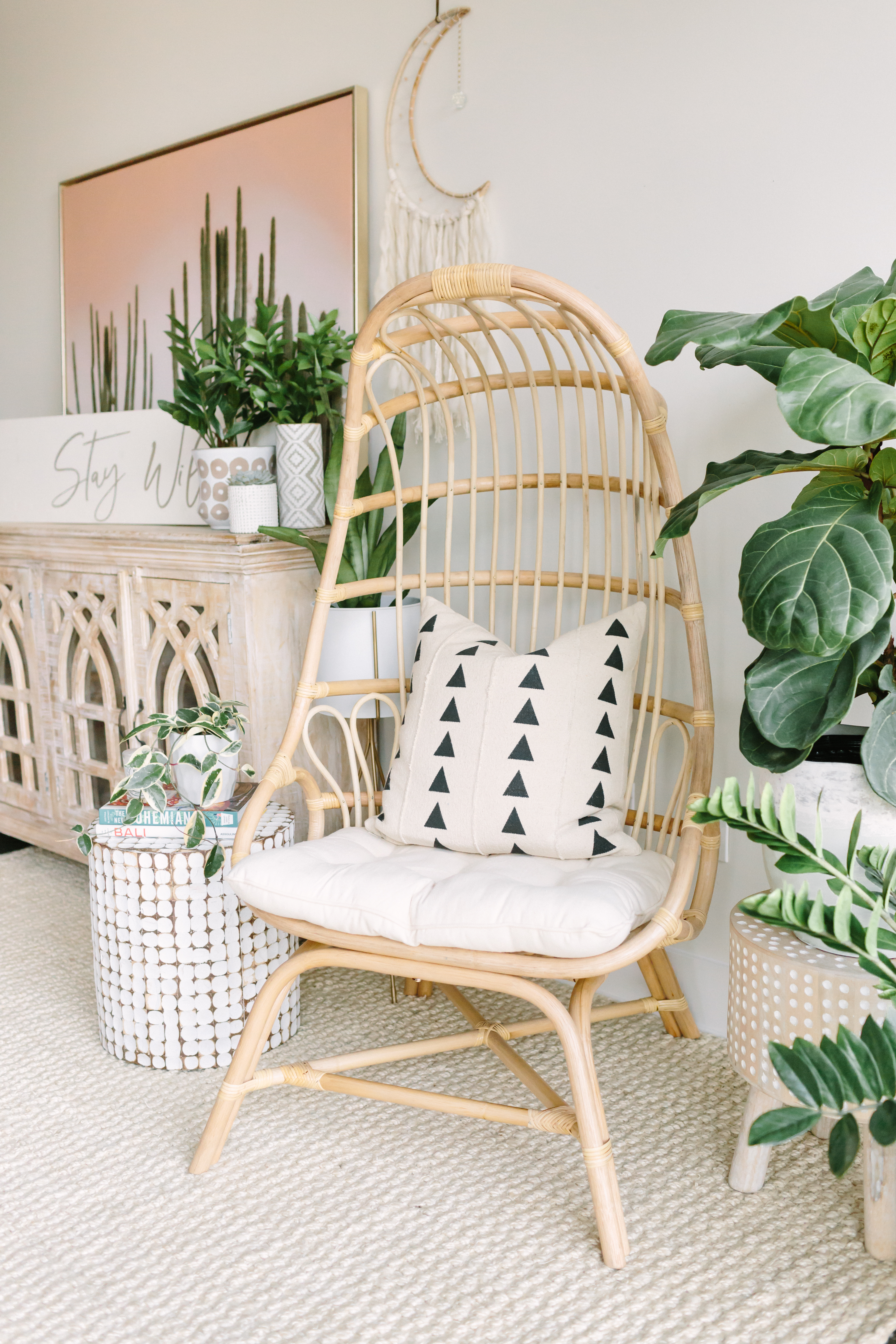 This rattan cocoon chair from World Market was a must have, the perfect addition to my boho gypsy apt! I can always count on World Market when it comes to adding global influences into my home space. I recently also picked up this bleached jute rug, it adds a great texture element to my space while keeping it simple and neutral. Creating a space that’s great for entertaining which I am all about!