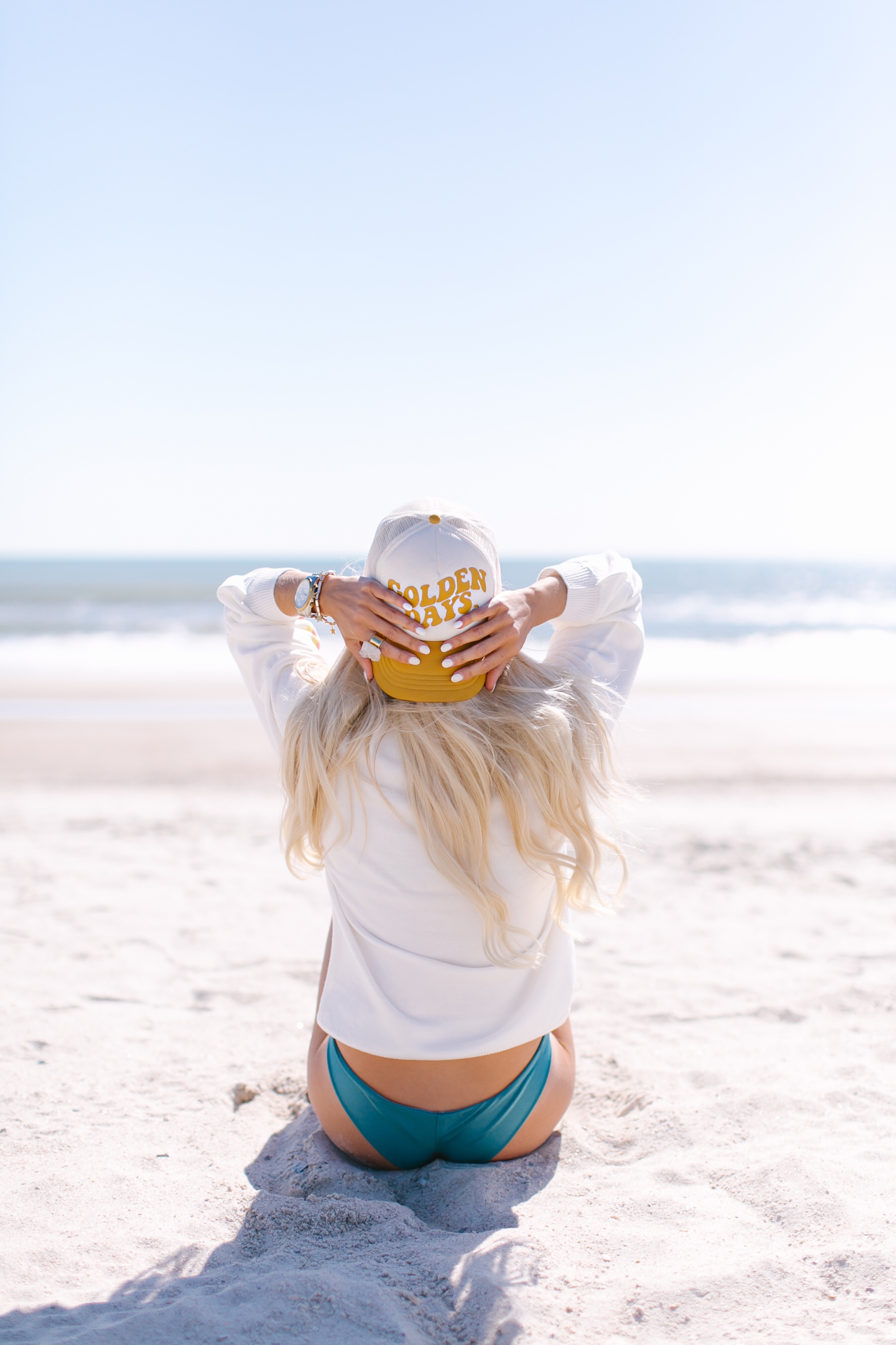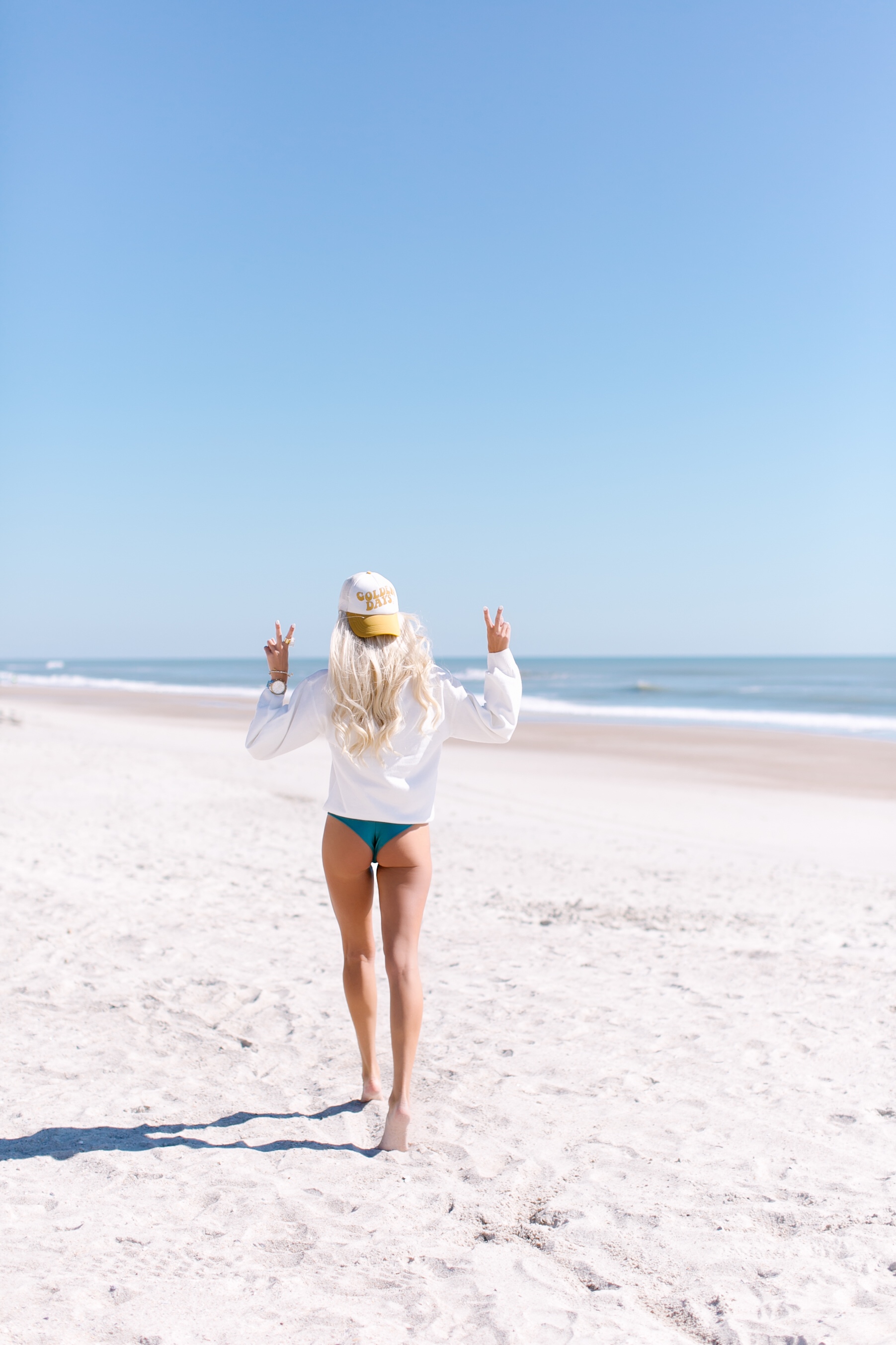 Billabong Swim Top | Billabong Swim Bottom | Asos Sweatshirt | Golden Days Hat | Rayban’s | Michael Kors Watch | Madewell Bracelet | Mila Rose Ring | Pink Lipstick