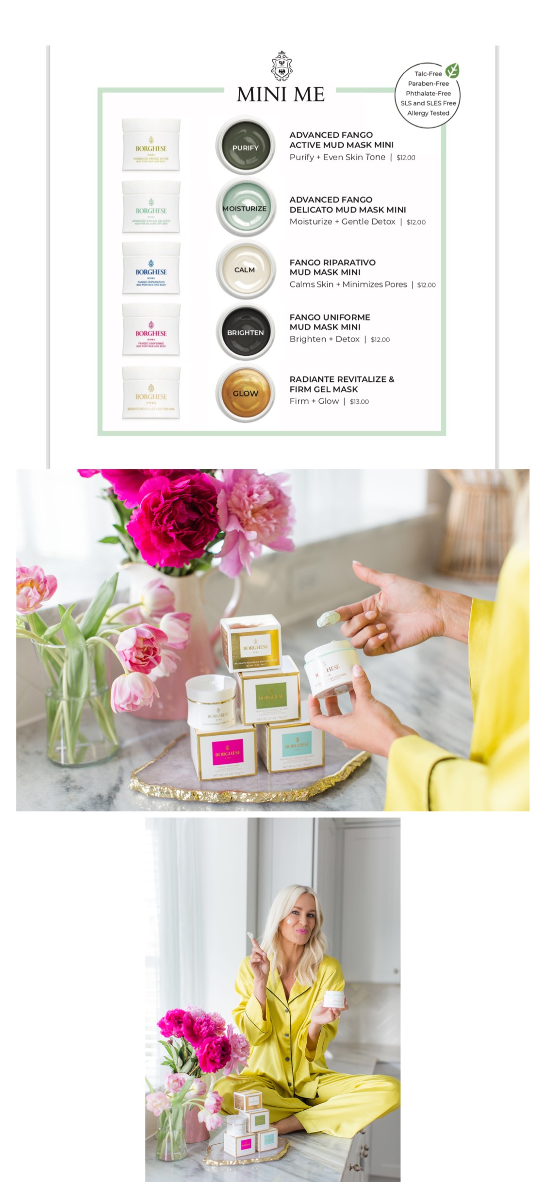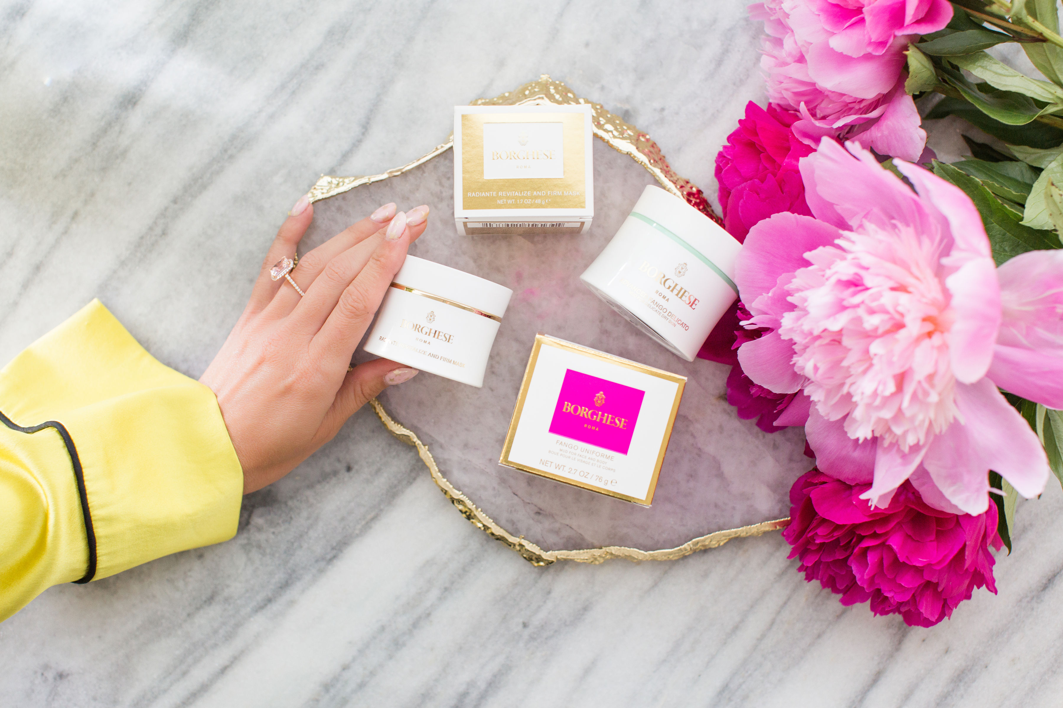 I couldn’t agree more than what Borghese stands for as a brand. Bringing the spa experience into your own living room (with a glass of wine in hand) is a new beauty routine I look forward to! Note to self: Stay in, spa out!